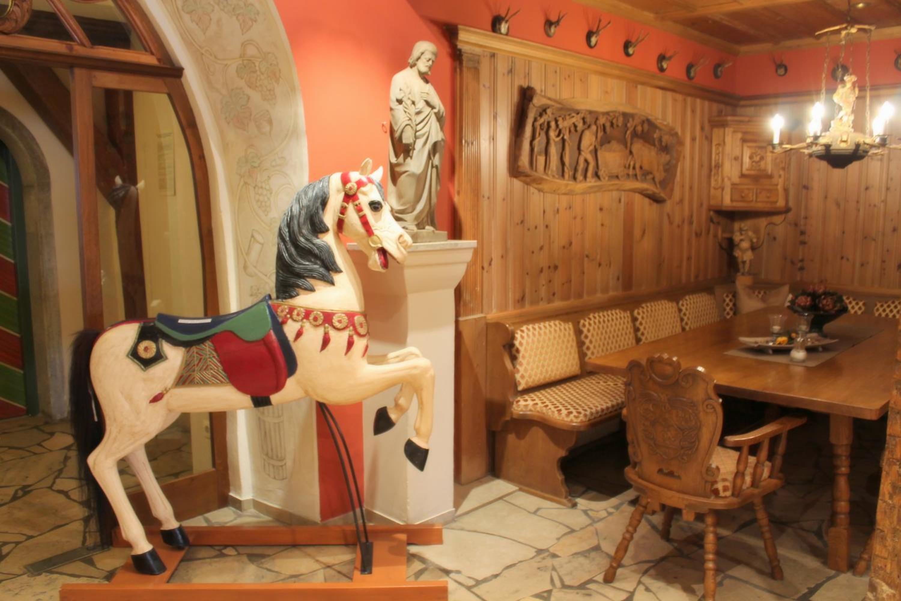 Die Einrichtung zeigte sich geschmackvoll. Der Frühstücksraum gemütlich und nach fränkischen Flair. Das gesamte Personal sehr freundlich und zuvorkommend