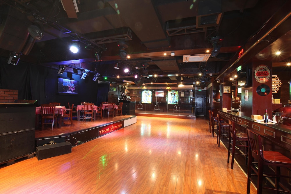 Noisy as club downstairs. On a weekend it seems to attract working girls and those looking for working girls.