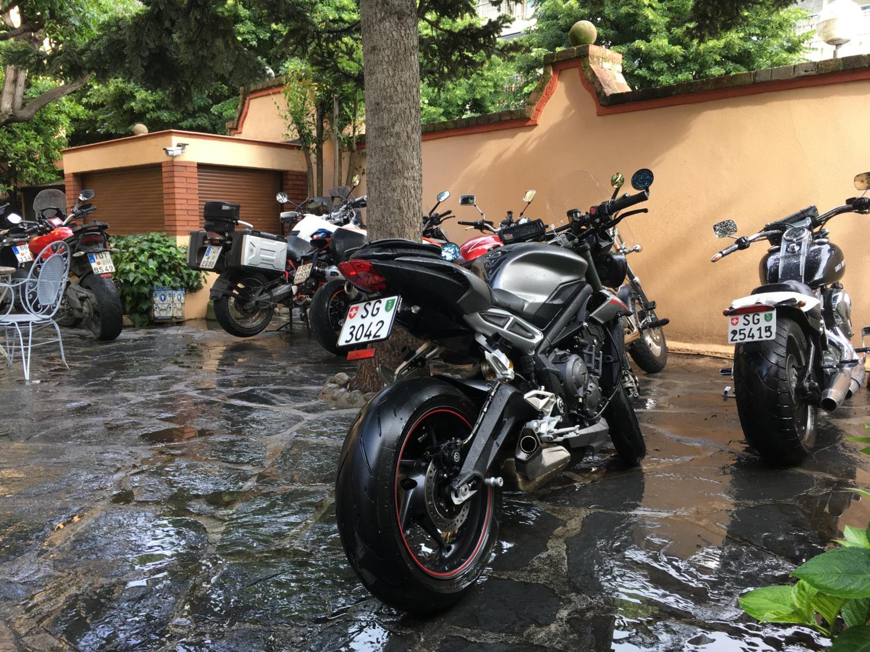 Public parking is possible at a location nearby (reservation is needed) and costs EUR 15 per day.