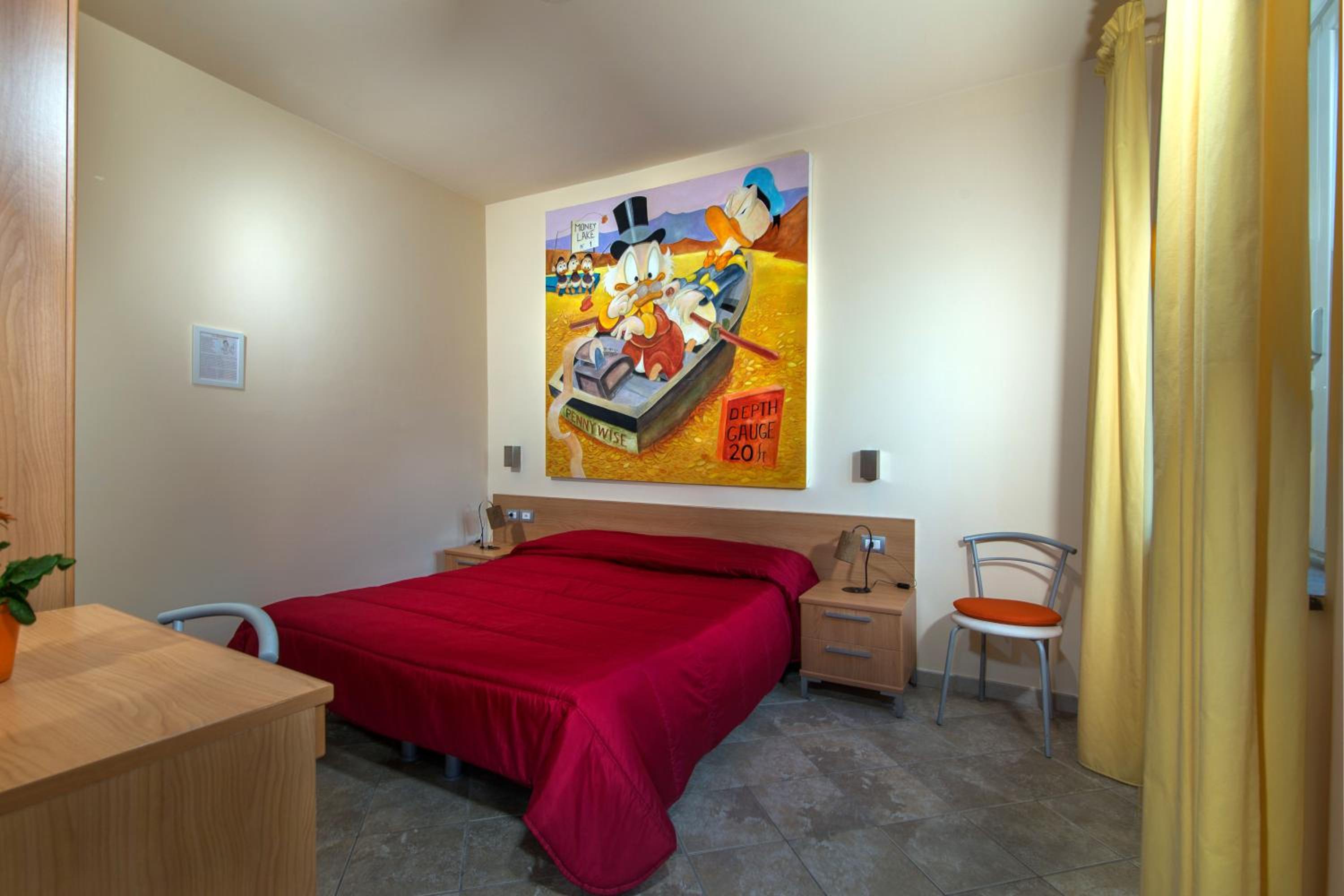 Experience a stay like no other at Villa Comics, where each room is uniquely themed after famous comic strip characters, adorned with vibrant canvases for a lively ambiance.
