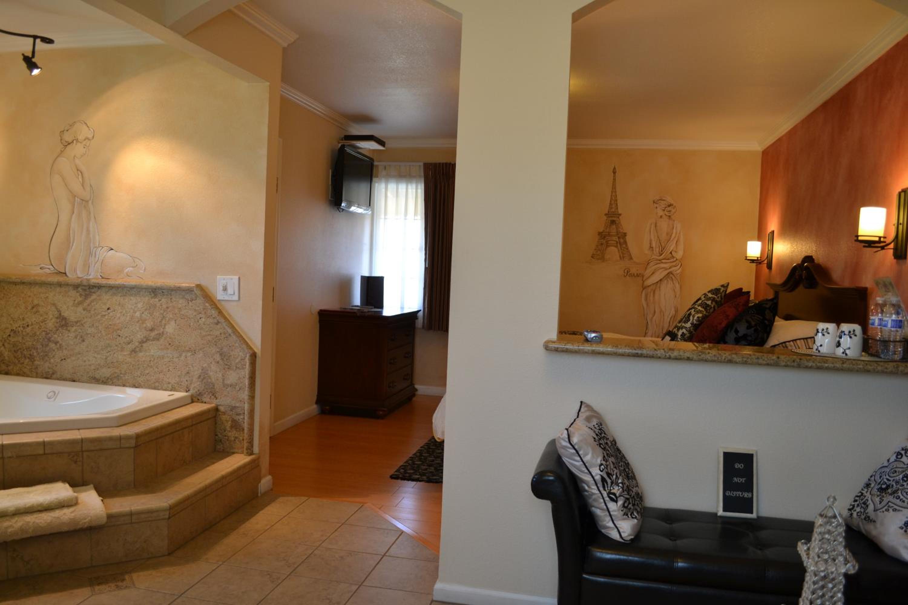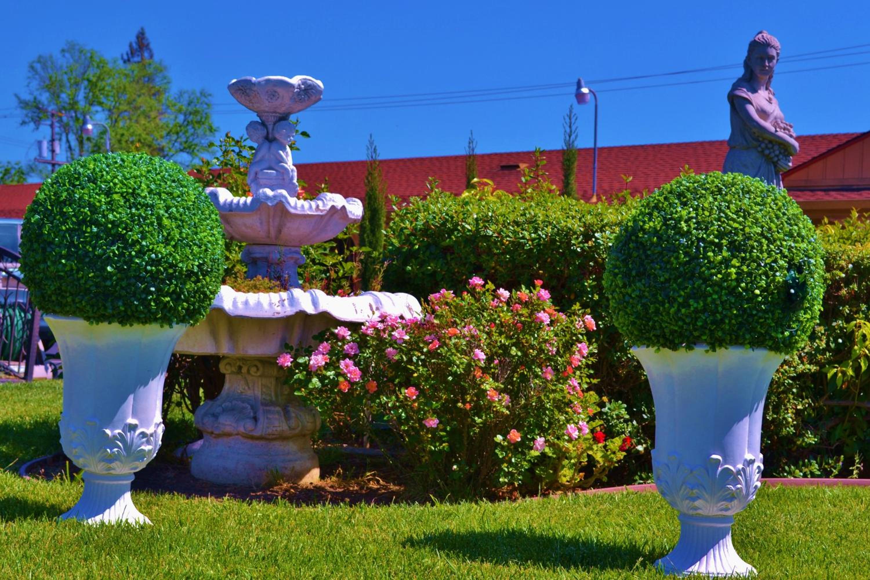 Beautiful gardens with great parking. Clean room and welcoming staff. No fridge or microwave as stated in description. Thin walls so you can hear your neighbors sadly. Shower flooded the bathroom floor very easily. Very convenient for Napa at a very reasonable price.