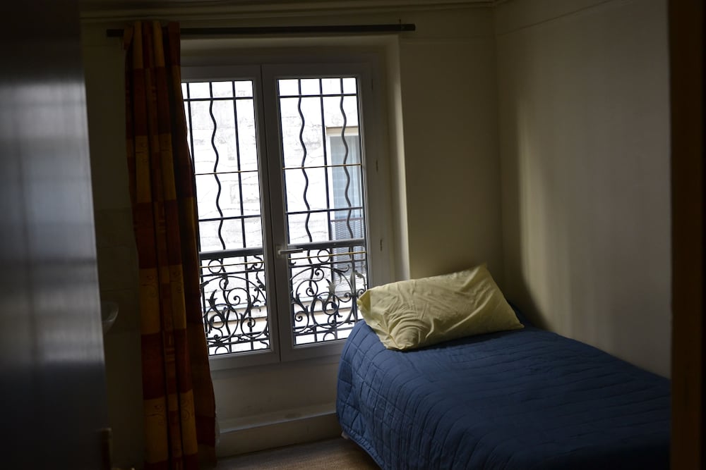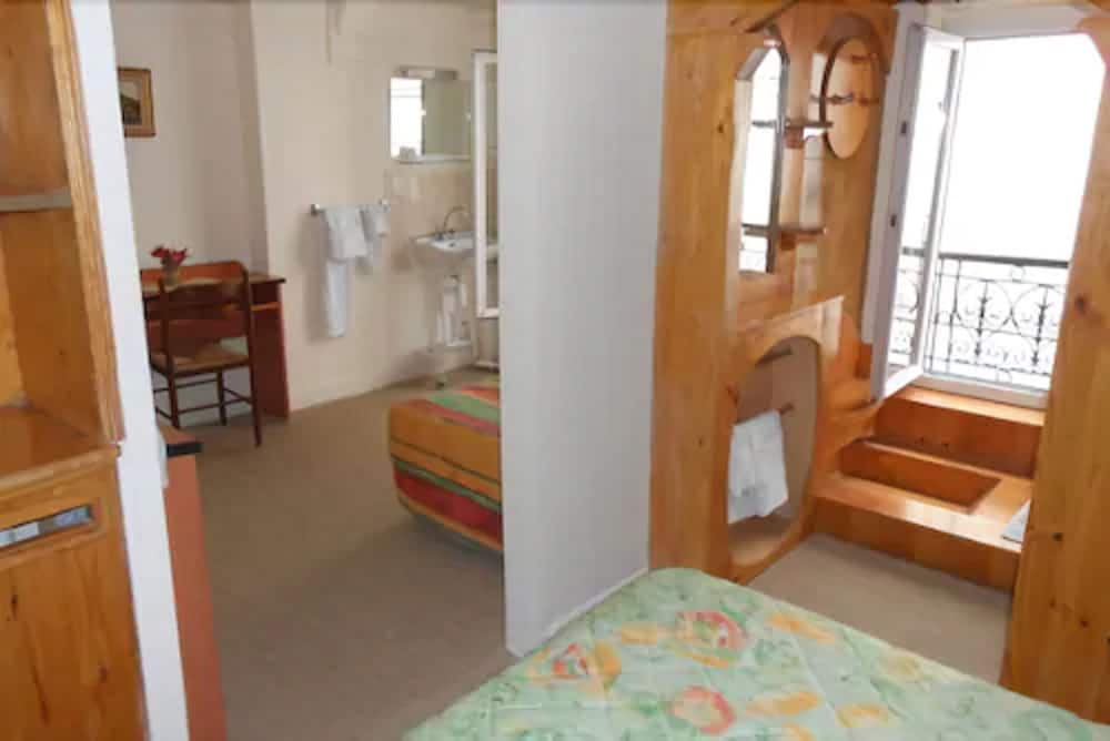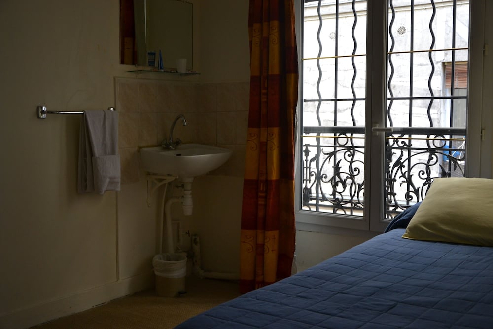 The hotel is very small and hard to spot on the street. It’s very outdated. We stayed in room with a loft which was very big and convenient for our family of 3 children. The bathroom which consists of a toilet and sink where in the loft with a glass door so not very private if traveling with friends. The shower is also not exactly a room if it’s own as it’s at the main door, but there is another door leading into the main room that can be closed to make it seem like a small shower room. There is no fans or air conditioning which made it difficult because it was 38 degrees there during our stay. There is a large window which is a safety concern with children. The room is very spacious. I would recommend this hotel for price and location conveniences. The Montmartre and other attractions are within walking distances along with the metro, a small grocery store and restaurants.