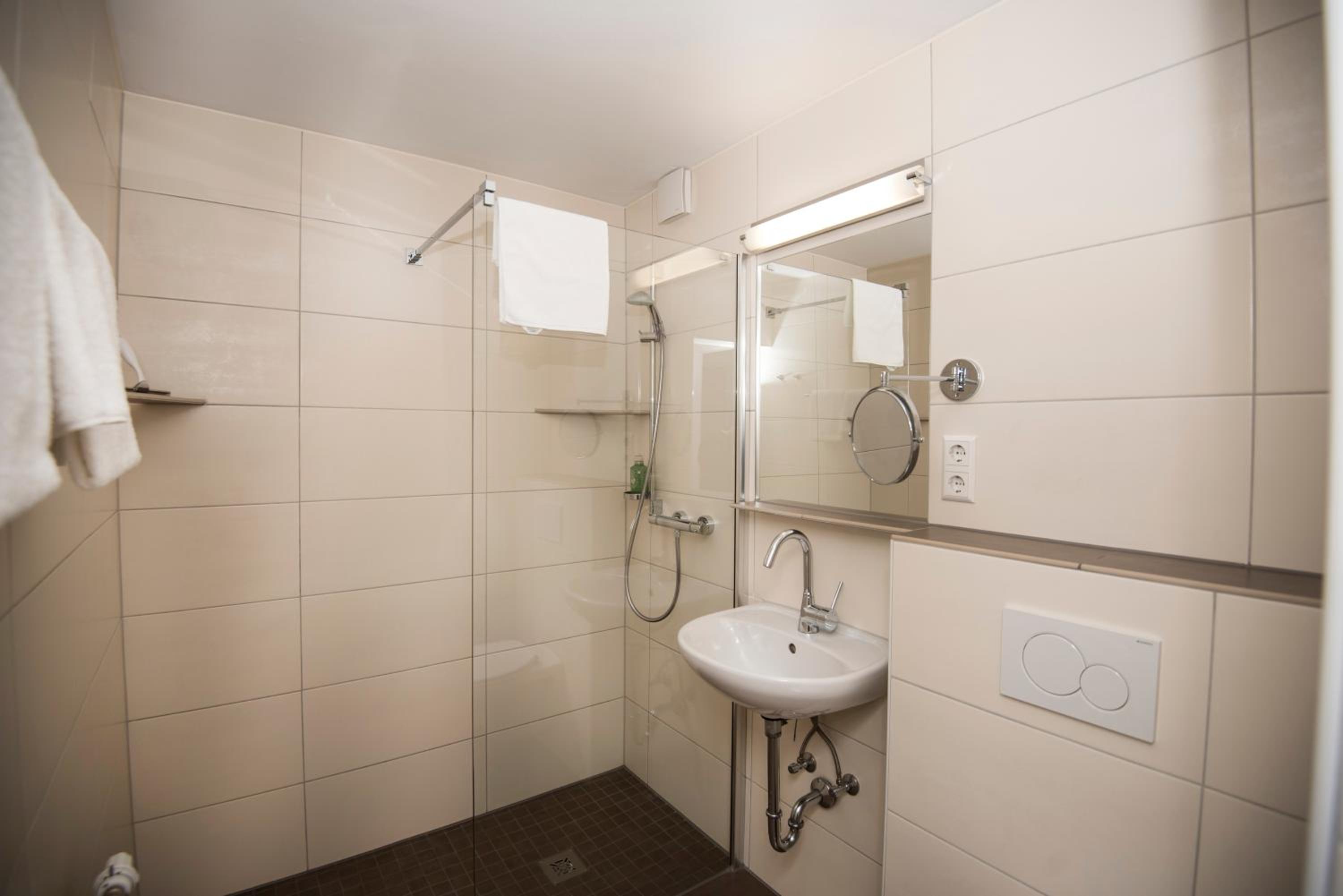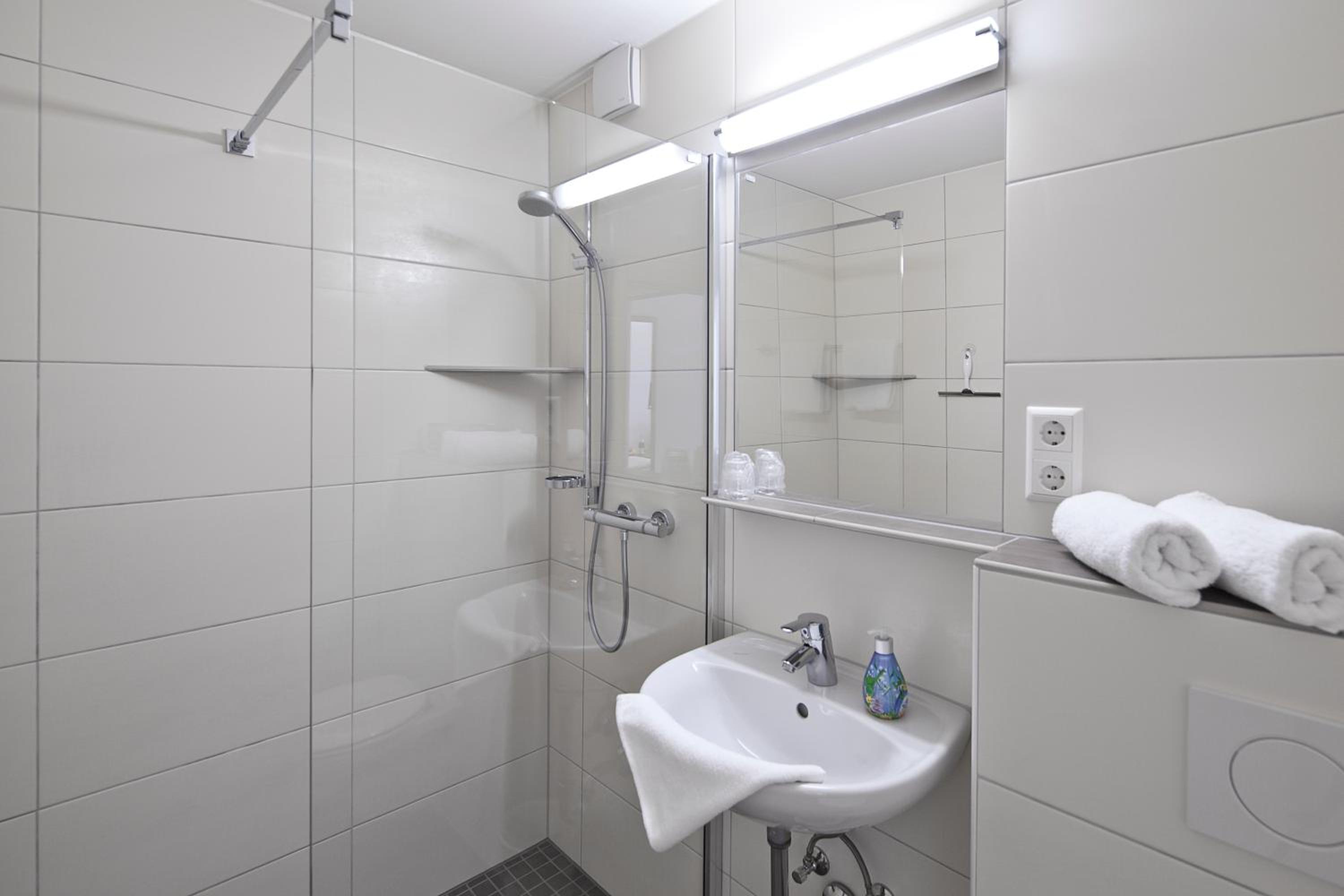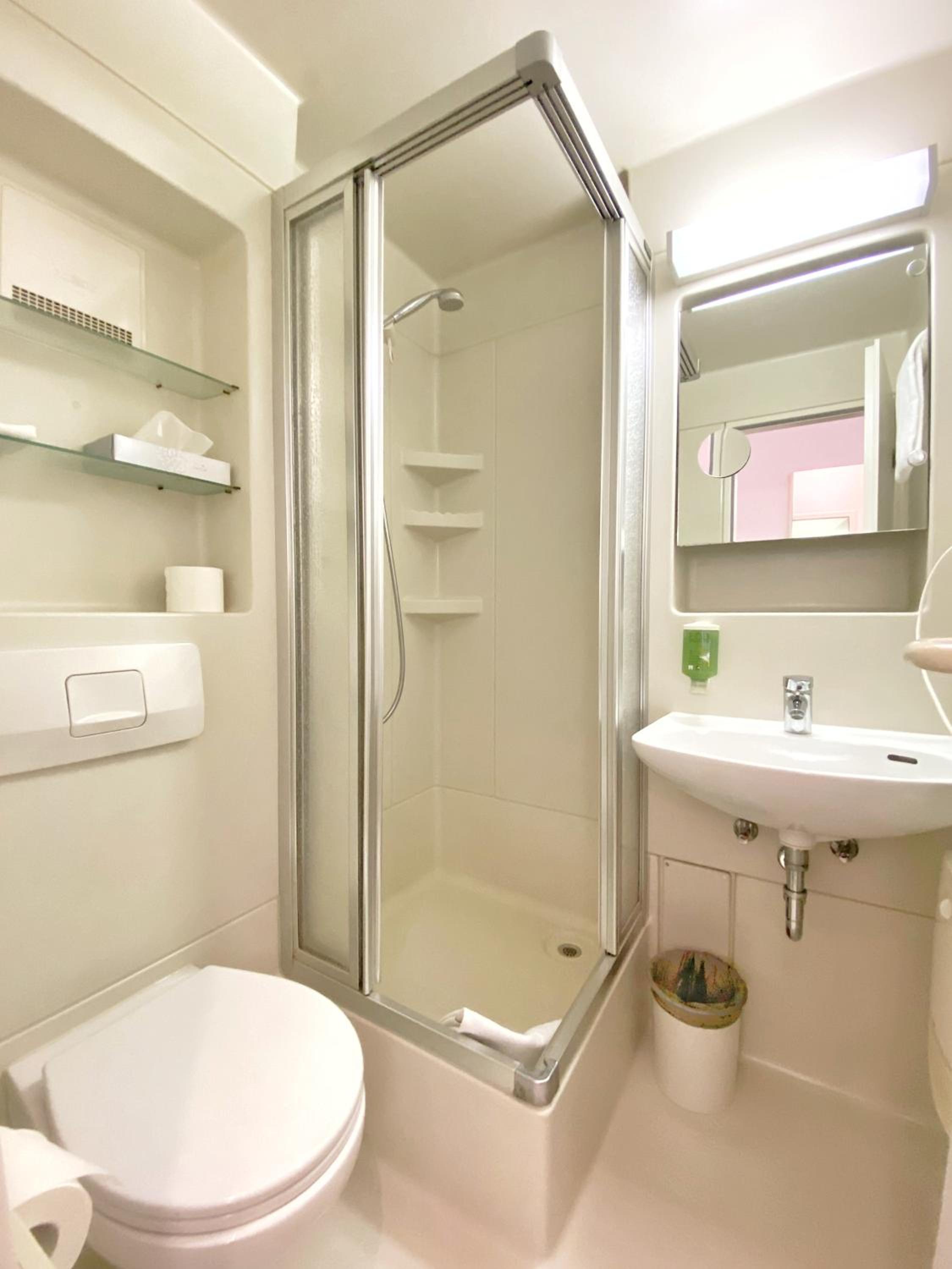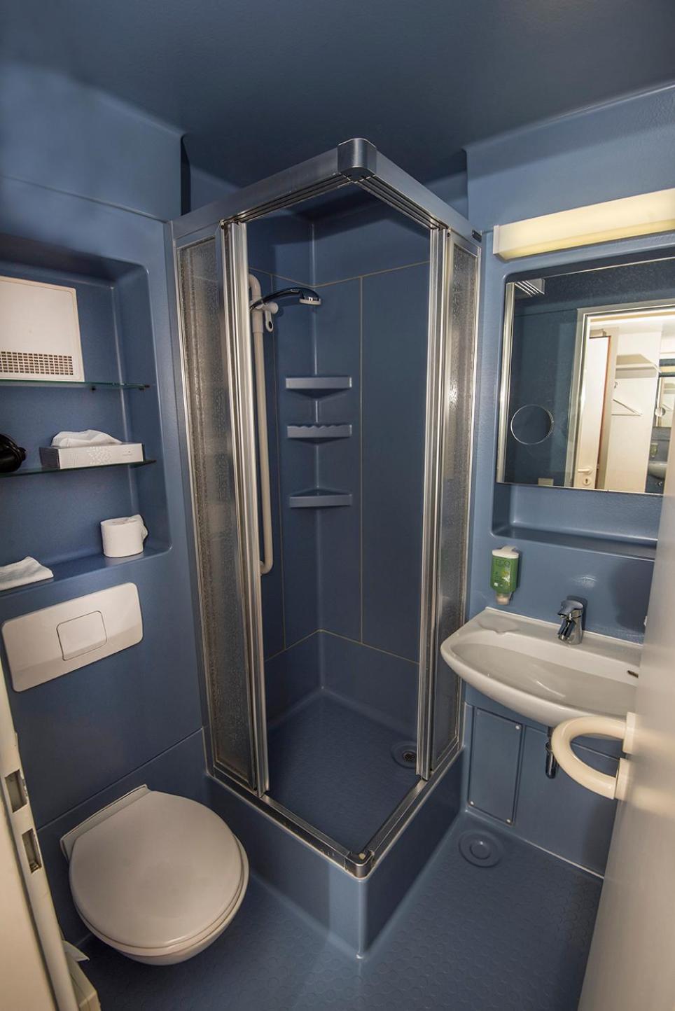 In die Jahre gekommen. Die Plastik Duschzellen funktionieren, gehören aber eher auf den Campingplatz oder in eine günstige Pension.