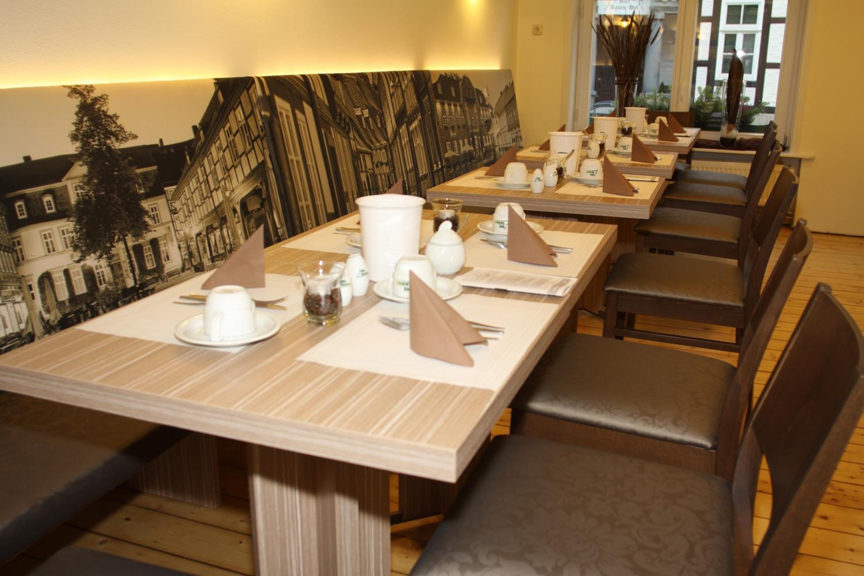 Gebucht für 10 Personen (5 Doppelzimmer) für einen Kurzurlaub über den Jahreswechsel. Hotel ist mit dem PKW gut erreichbar, Parkplätze sind auf dem Hof vorhanden. Kostenpflichtig 8 EUR/Tag, dafür kurze Wege, abends abgeschlossen am Hotel, Zutritt nur über Schlüsselkarte. Auf der anderen Straßenseite ist ein großer kostenpflichtiger Parkplatz, sonst sieht es in der Altstadt schlecht aus. Da es ein altes Fachwerkgebäude ist, sind alle Zimmer unterschiedlich aber modernisiert. Kein Aufzug bei drei Etagen, daher ist Koffertragen angesagt. Die Zimmer und das gesamte Hotel war sauber und es herrschte ein angenehmes Klima. Die Sauna war gehen eine Gebühr von 15 Euro pro Kopf/Tag nach Anmeldung nutzbar. Bademäntel und Handtücher werden zur Verfügung gestellt. Die Sauna ist für max. 4 Personen mit mehreren Saunaduschen und Fussbecken ausgestattet. Ruheliegen sehen nur 2 zur Verfügung, was aber bei Nutzung pro Zimmer auch ok ist. Jedenfalls eine schöne Sauna. Das Frühstück war für drei Sterne (DEHOGA) in Ordnung. Eierspeisen werden auf Bestellung zubereitet. Nachgelegt wurde auch ausreichend. Zur selbstorganisierten Sylvesterfeier stand ein Raum im Erdgeschoss zur Verfügung, der über ein Selbstbedienungsbar verfügt, leider mit gepfefferten Preisen. Sonst war es in dem Raum aber angenehm. Das Personal war nett und aufmerksame, der Inhaber sehr entgegenkommend und gesprächsbereit. Ein kleiner Tip von uns unabhängig vom Hotel. Unbedingt in den Gaststätten und Restaurants reservieren! Sonst sieht es bei Gruppen mit mehr als drei Personen schlecht aus.