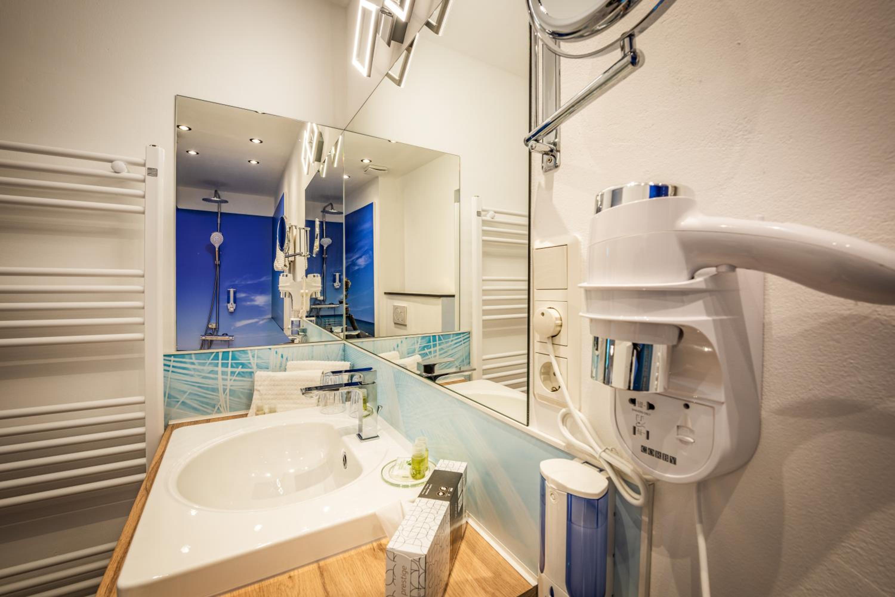 Die Zimmerpreise sollten an die Zimmerausstattung und Größe angepasst werden. Es ist nicht erklärbar, dass alle Zimmer, auch wenn es dem historischen Gebäude geschuldet ist, gleich sind. Das Verhältnis passte einfach nicht, hier sollte nochmal reguliert werden. Unsere Reisegruppe hatte ein Problem mit dem wohl kleinsten Zimmer im Hotel. Es entsprach in keinster Weise den Vorstellungen der Gäste. Das Zimmer war sehr klein und die Dusche war zwar modern, aber mit dem Zugang direkt zum Zimmer und unweit des Bettes. Zudem hatte die Dusche keine Tür, was bei der Lage der Dusche nicht jedermanns Sache ist. Im Einzelzimmer vielleicht, im Doppelzimmer aber ein absolutes No-Go! Im Designerhotel mag das ja als schick gelten, im einem Familienhotel geht das nicht. Hier müßen wir aber loben, dass sich das Personal des ausgebuchten Hotels sofort gekümmert hat, der Inhaber aus seinem Feierabend umgehend ins Hotel gekommen ist und ruhig und auf Augenhöhe eine zufriedenstellende Lösung gefunden wurde. Wie gesagt, bei den Zimmerpreisen sollte nochmal auf die verschiedenen Zimmerausstattungen geschaut werden.