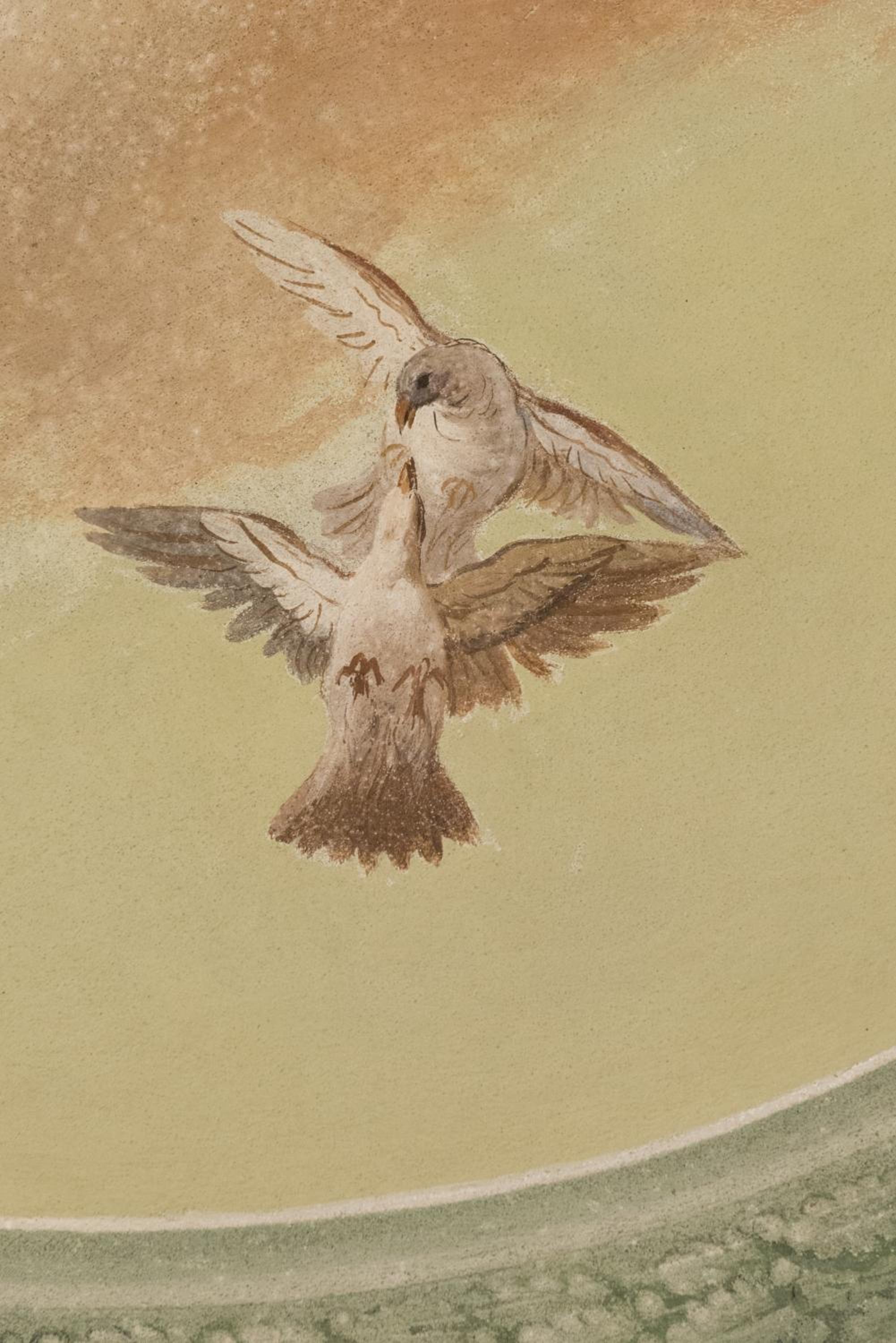 Très beau lustre au dessus du lit et belle mosaïque.