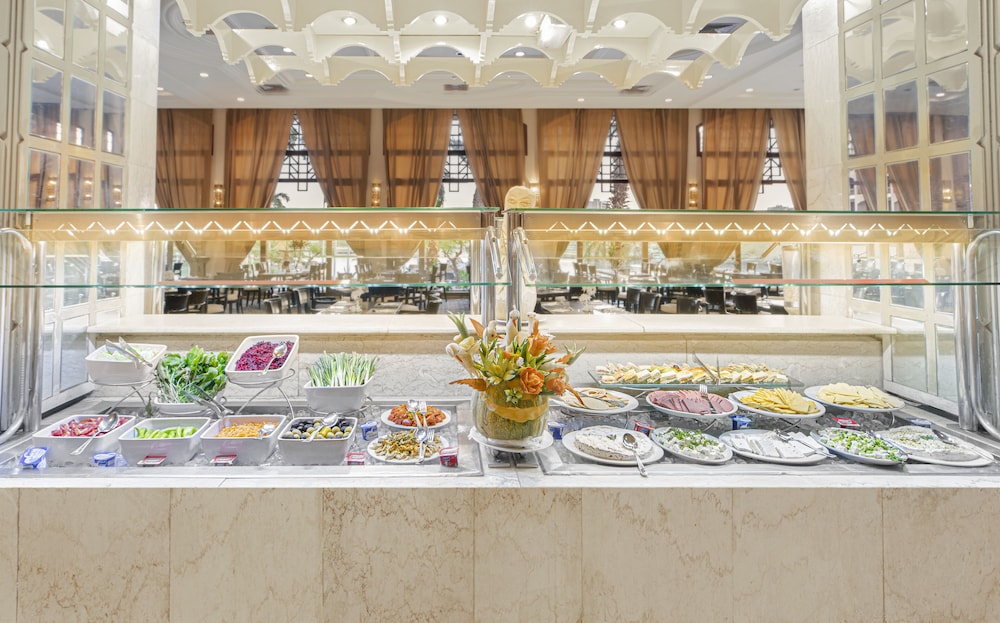 Savor exquisite international cuisine at Ramsis, one of our three on-site restaurants. Whether you choose a sit-down meal or 24-hour room service, culinary bliss is always at your fingertips, complemented by refreshing drinks from our poolside bar.