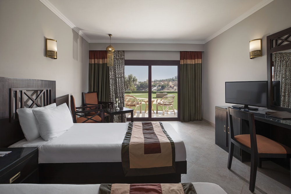Our room needed some maintenance and we assume had not been used for sometime. For example, the sliding door to the balcony screeched loudly when we opened and closed it. The bathroom looked like it had been poorly finished around the bath and sink. The shower wasn't easy to use. Otherwise we enjoyed the view from our room across the Nile, the pool area was very nice. Service for drinks and food was incredibly slow - it looked like there was only one staff member dedicated to serving everyone. The Italian food on the menu (the Italian restaurant was closed) not enjoyable - most people in our party did not enjoy the food and it was served cold as we had waited for so long.