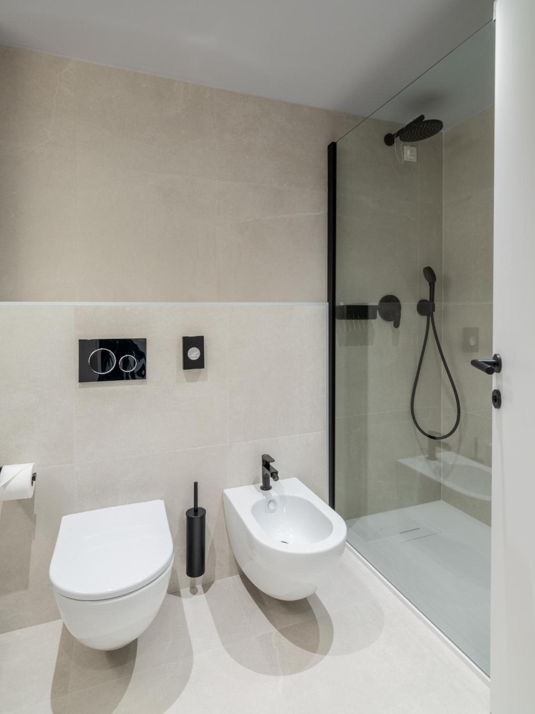 Die teils offene Dusche erhöht die Chancen auf Überschwemmung im Bad.