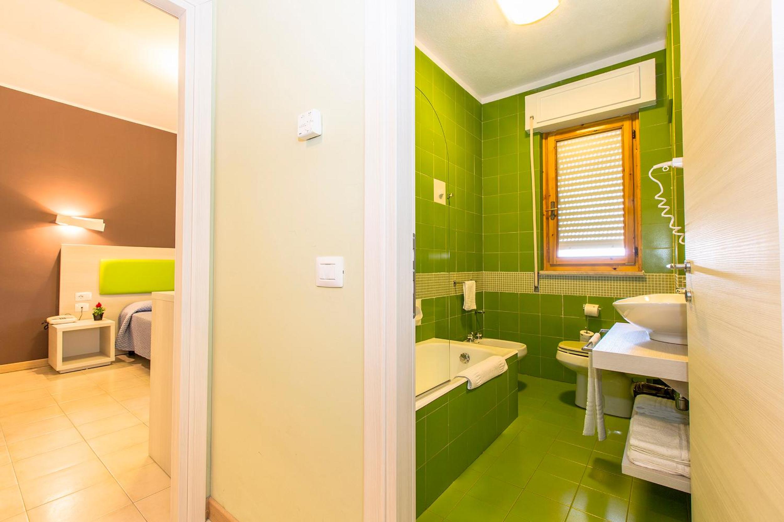 La camera grande spaziosa bagno bel servito. Arredi essenziali ma nuovi. Gran assortimento per la pasticceria a colazione. Mentre la colazione salata molto risicata con uova soda due tipi di salumi e formaggio affettato.
