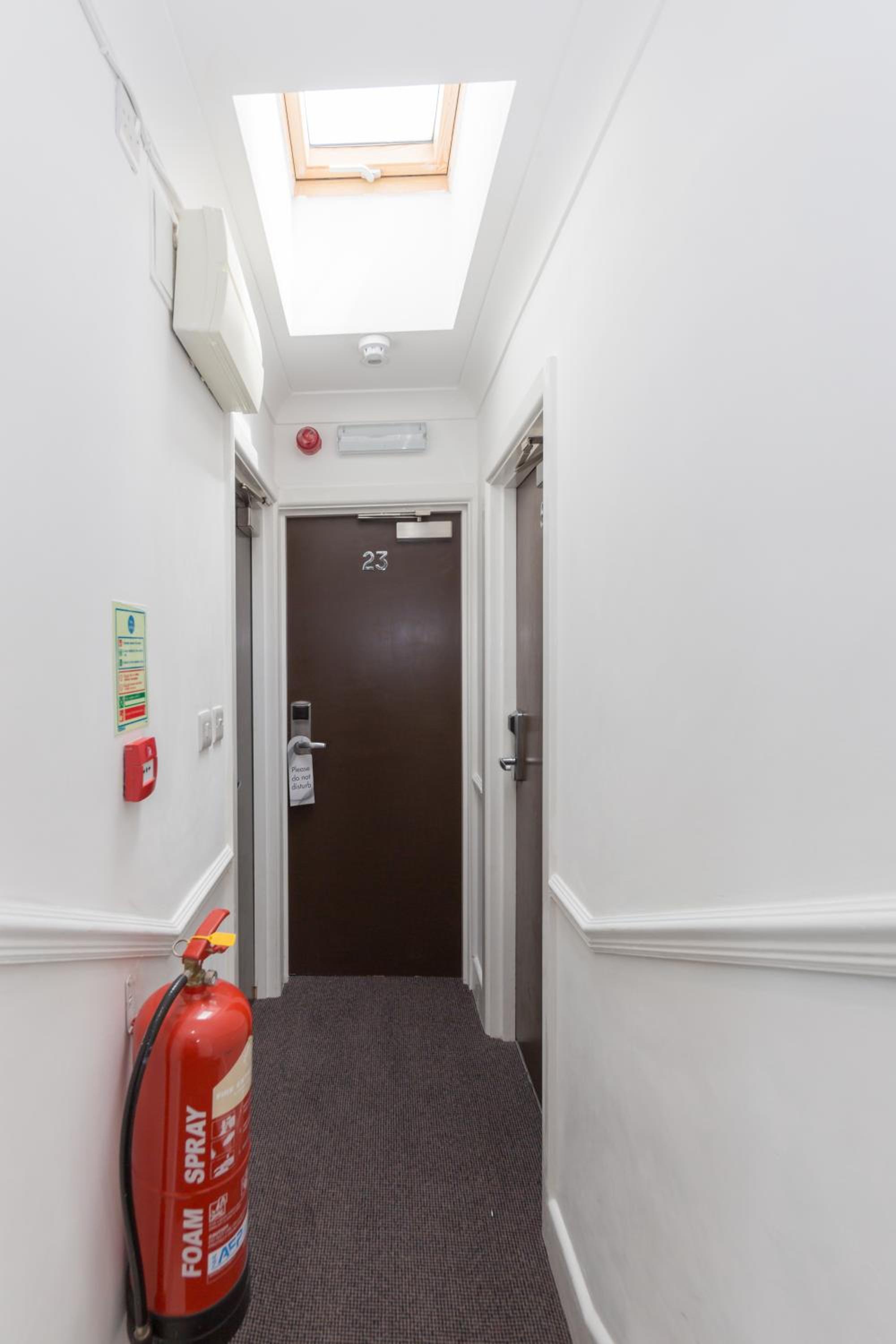 A ver, es un antro estrecho y de habitaciones minúsculas. Las fotos son mejores que la realidad. Nosotros teníamos baño en la habitación pero otras habitaciones compartían baño. Vigilad al reservar. Gracias a Dios el suelo de las habitaciones no tiene moqueta. Aunque hay humedad por la lluvia y a veces olía un poco no hacia frío en las habitaciones. Estaba limpio en general. No hay armario en las habitaciones solo unos percheros, hay que ser ordenado para que no reine el caos. Básicamente para dormir después de patear Londres está bien. Es como un bed&breakfaat sin breakfast🤪.