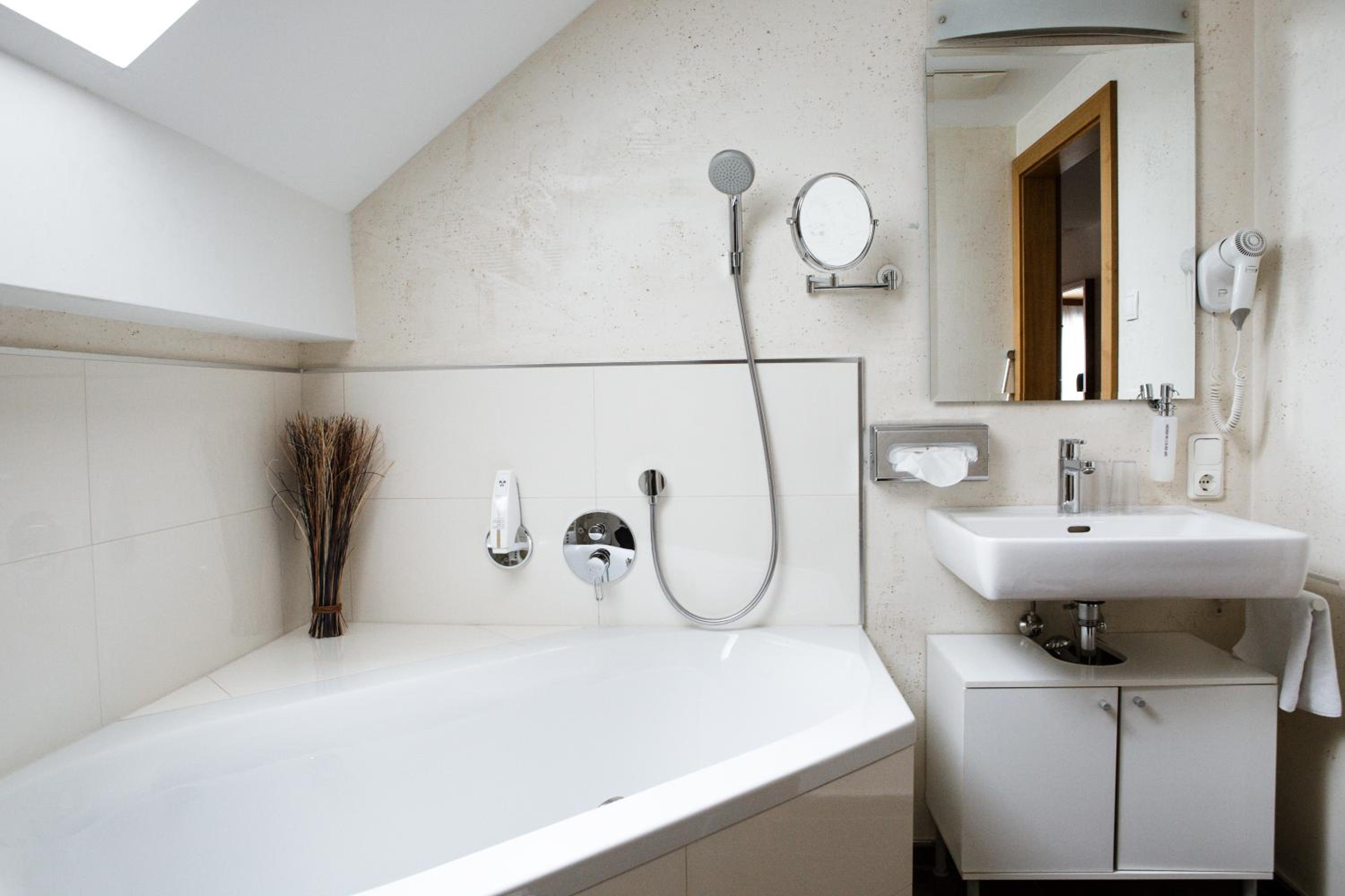 Hotel Kapeller Innsbruck offers modern rooms in soothing pastel colors, providing a tranquil retreat after a day of exploring the city.