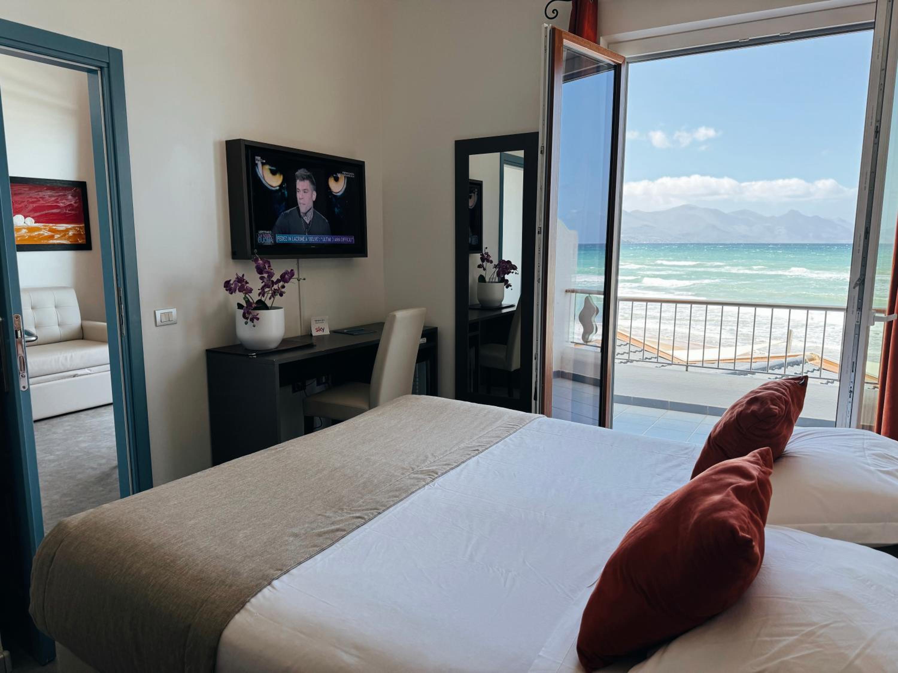 Das Hotel liegt direkt am Strand von Alcamo Marina. Vor dem Hotel befinden sich ausreichend Parkplätze. Es wird ein hervorragendes Frühstücksbuffet geboten, das Personal legt laufend frische Sachen nach. Obwohl bei unserem Aufenthalt schon Nachsaison war, konnten wir am Abend im hoteleigenen Restaurant ein ausgezeichnetes Dinner genießen. Das Personal war sehr hilfreich und zuvorkommend. Das Zimmer war sehr groß und absolut in Ordnung.
