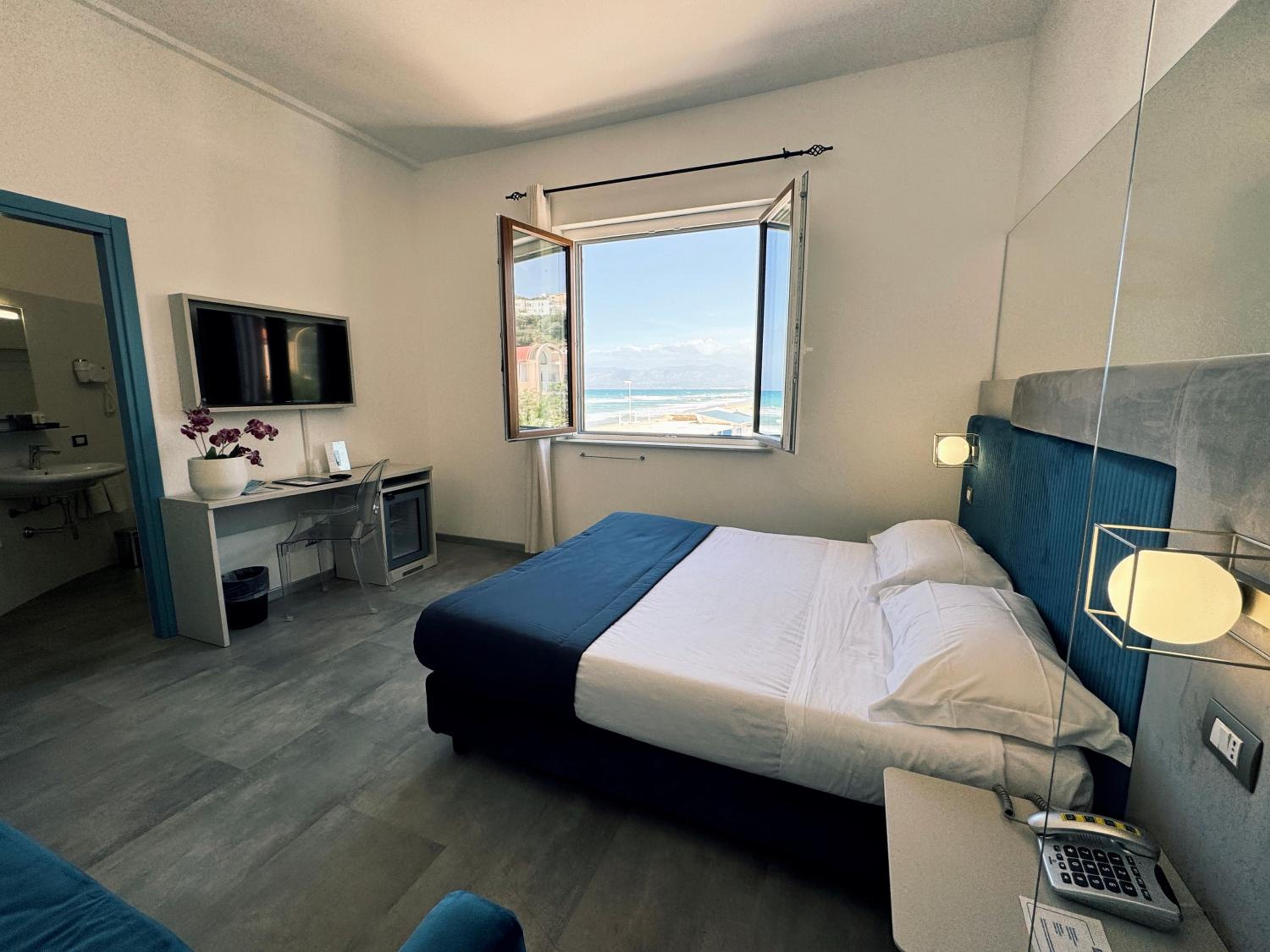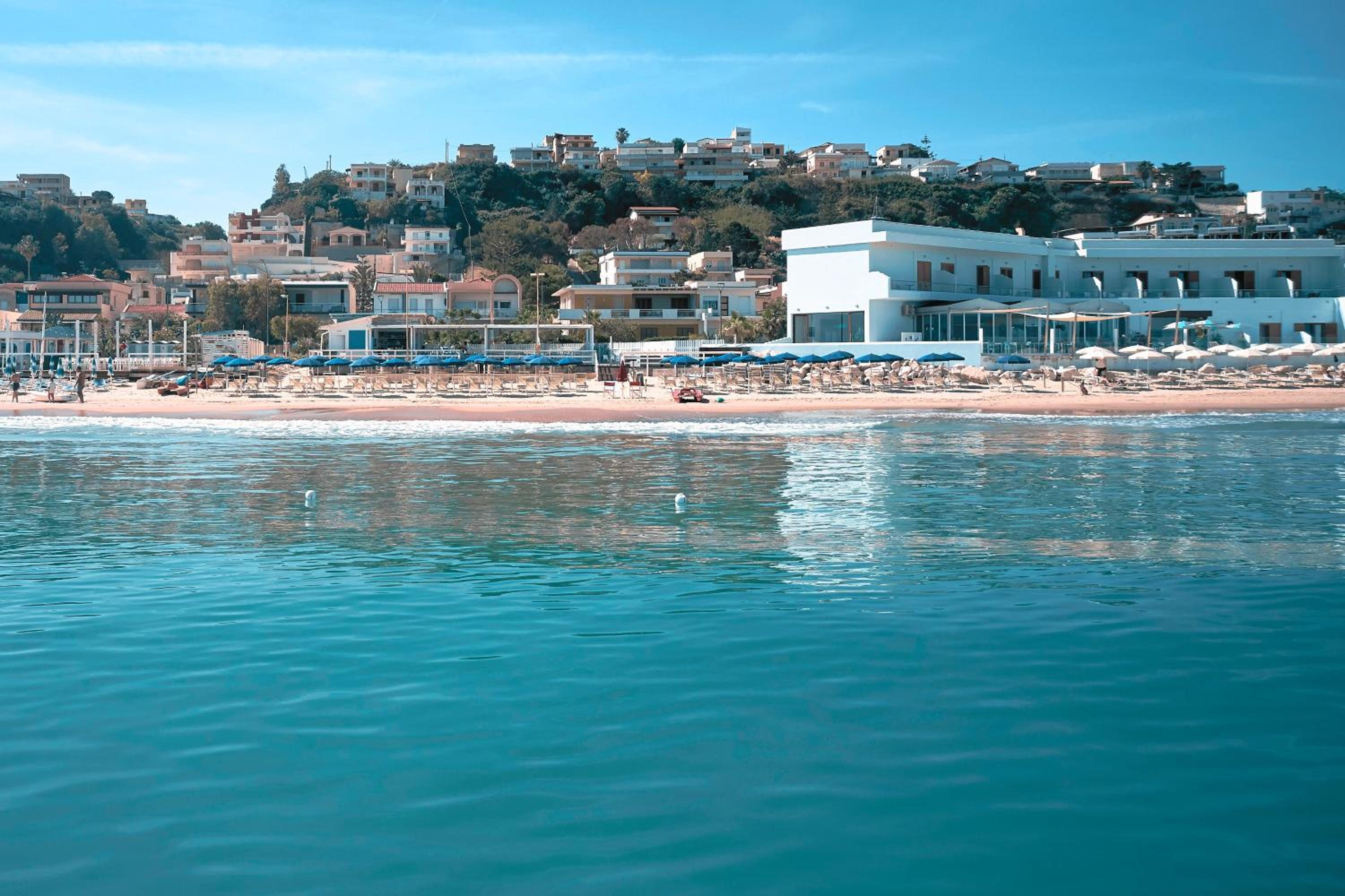 Enjoy a free private beach, a refreshing swimming pool, and beautifully decorated Mediterranean-style rooms with complimentary Wi-Fi.