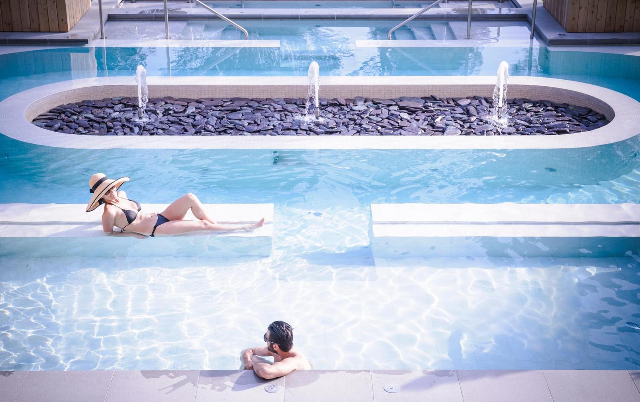 Ambiente molto grande, al check in viene consegnata un'utilissima mappa per potersi orientare. Piscine incantevoli, molte zone relax, colazione e pasti molto vari e di qualità, pulizia estrema ed impeccabile delle piscine e degli ambienti sia esterni che delle camere. 6 piscine, una cascata, un calidarium, una sezione dedicata ai pediluvi, 3 bagni turchi ed una sauna. Una delle piscine chiuse è in una zona vietata ai bambini dove vige l'obbligo di silenzio, i lettini singoli o doppi sono comodissimi e spaziosi, la temperatura di 31 gradi costanti fuori da questa vasca consente di stare sempre in costume. Si possono scegliere i cuscini per dormire in camera.