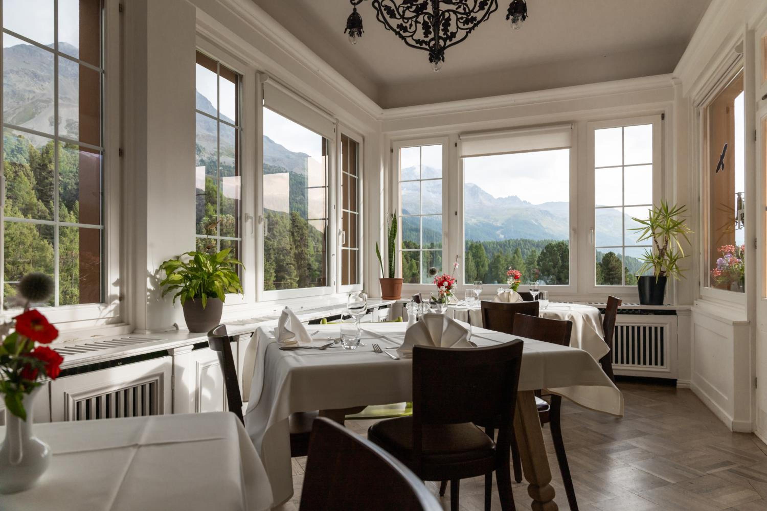 The hotel caters to families with a playroom and various kids' activities. Explore the surrounding nature with forests, meadows, and lakes within walking distance. Adventure seekers can try water sports at Lake Silvaplana, just a short drive away.