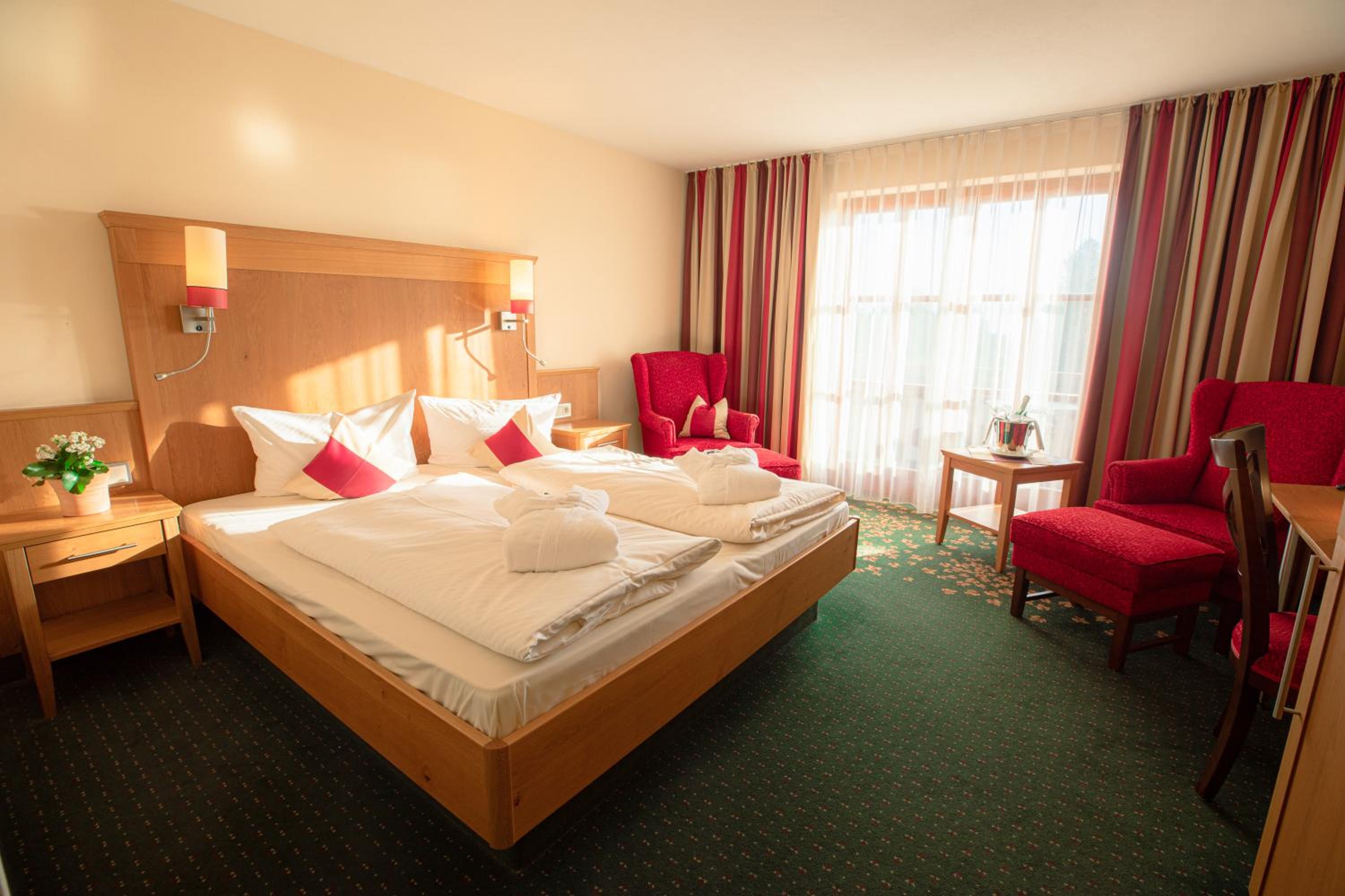 Start your day with a rich buffet breakfast and savor regional specialties and a 4-course dinner at the on-site restaurant. On sunny days, dine on the sun terrace overlooking the beautiful surroundings.