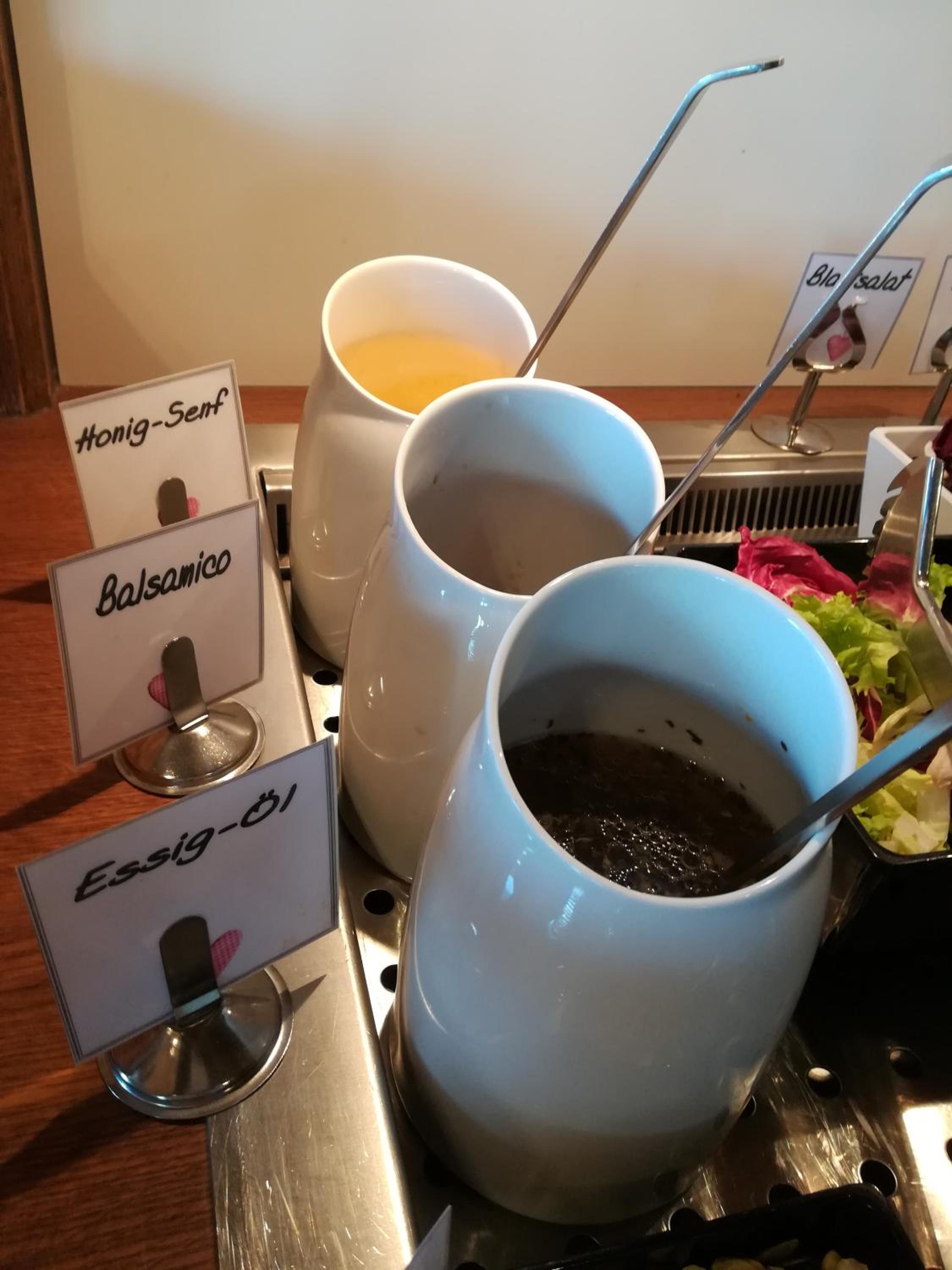 Beim Frühstück, waren offensichtlich teilweise die Brötchen vom Vortag wieder aufgebacken - dementsprechend leider teilweise Bröselware. Vor einigen Jahren gab es hier noch sehr gute bayrische Küche ohne Schnick/Schnack - heute leider nur noch Gourmetmenue am Abend oder Einzelteile davon bestellbar - dies wird mit etwas penetrantem täglichem Hinweis beim Frühstück auf das Abendmenue zwecks notwendiger Reservierung mit Reservierungskarte bereits mit Zimmernummer ausgefüllt am Frühstückstisch durch die Servicekraft vorgelegt - eleganter wäre hier ein Schild am Eingang mit Karte zum selbst ziehen u. ausfüllen "bei Bedarf" -