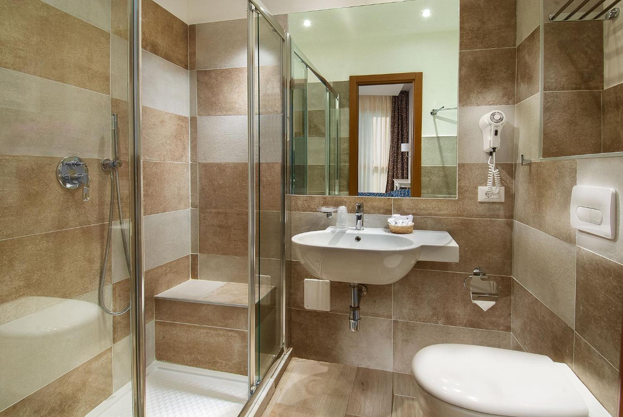 In bagno, la doccia è ampia e ha anche una seduta incorporata per chi preferisce stare più comodo.