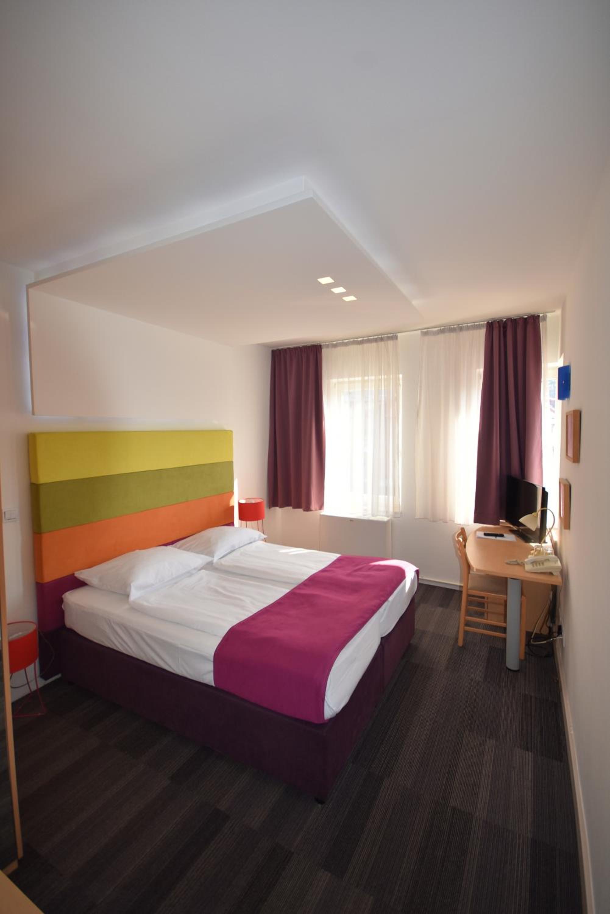 Soba placena 90€ za jednu noc.na stranici sobe prikazane kao prostrane,a dobili sobu u potkrovlju koja je bila iznimno mala i ne moze se uspraviti i izgledala je kao da jos nije u potpunosti zavrsena tj sav namjestaj bio razbacan po sobi. "Klima" je bila plasticna kutija koja je samo hladila, radiatori nisu radili a vani -7 stupnjeva. Kupaona ne cista, ne mogu uopce opisati njeno stanje, vrata od tusa nisu se uopce mogla zatvoriti do kraja.. Kao secer za kraj pri rezervaciji je parking u garazi bio ukljucen ali ga nije bilo.