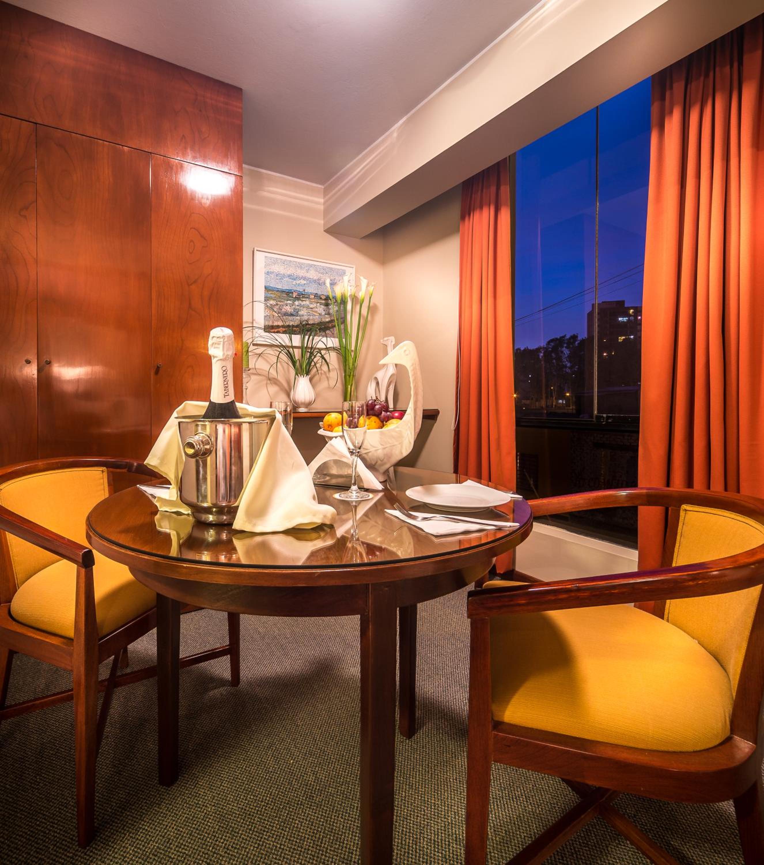 Start your day with a complimentary American breakfast or opt for room service at our on-site cafeteria. With a prime location near the Cisneros boardwalk and easy access to Jorge Chavez Airport, Hotel Park Suites is the perfect choice for your stay in Lima.