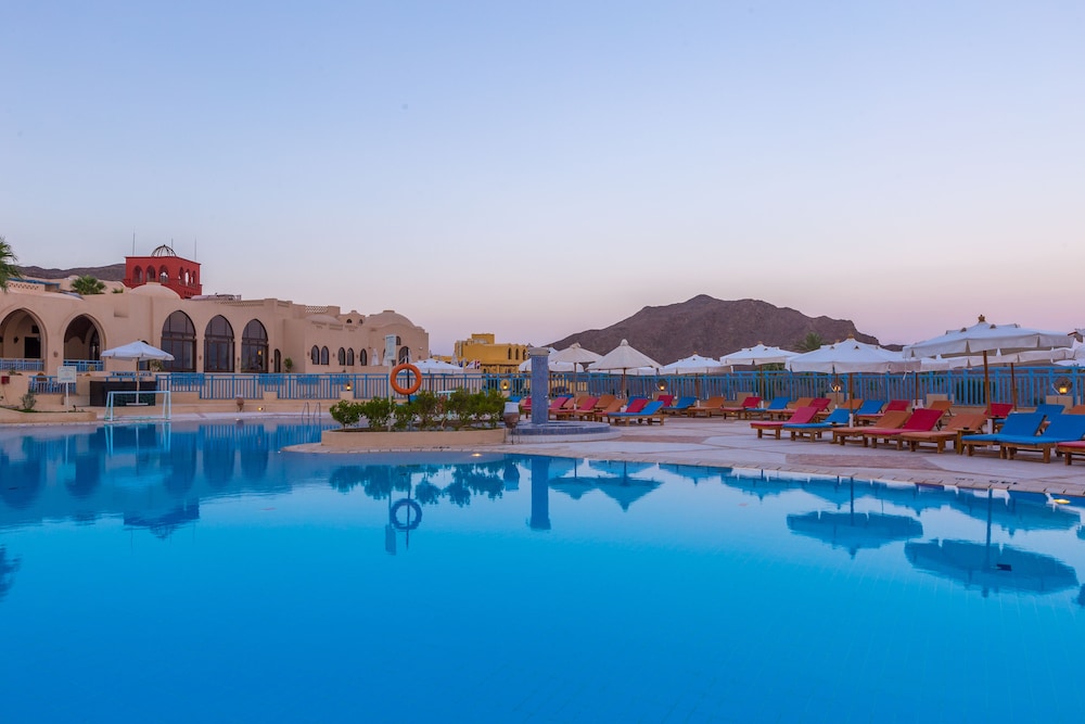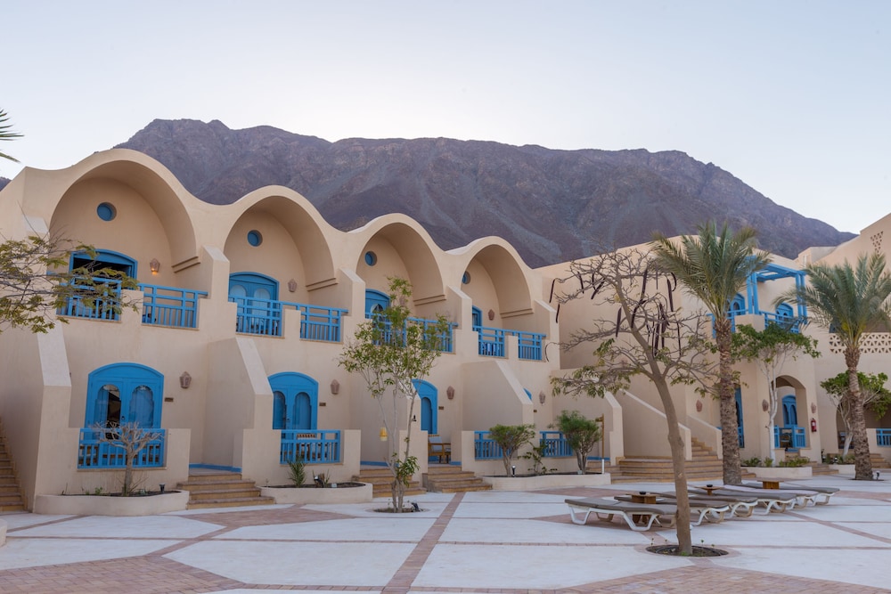 The place looks like an abandoned movie set. The room was fine, but dirty. When I stepped into the shower it was full of sand brought from the beach probably from the previous occupiers. One sink tap was leaking and flooding all the bathroom top. Breakfast was acceptable, but the food was not very tasty and drinks terrible. The hotel beach was awful, rubbish everywhere and probably the only place all along the cost with no reef. I went there only one day and a poor camel stayed tied down (neck to front legs), unable to stand up, for hours. The only positive thing is people at the reception desk, all very kind and helpful. I felt a bit sorry for them.