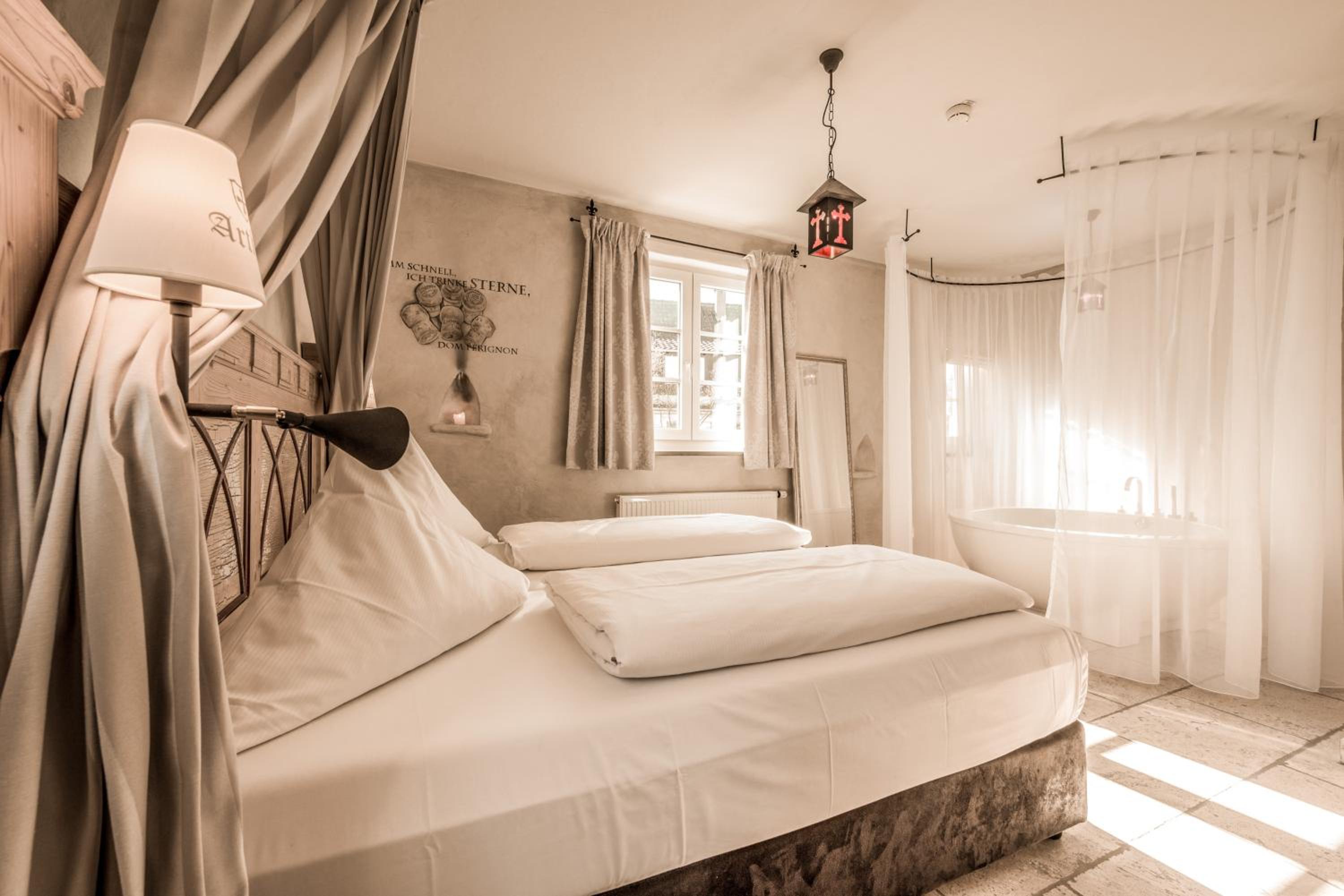 Experience Medieval Charm: Immerse yourself in the romantic view of a castle and the mystical ambience of this medieval knight's inn, offering modern comforts.