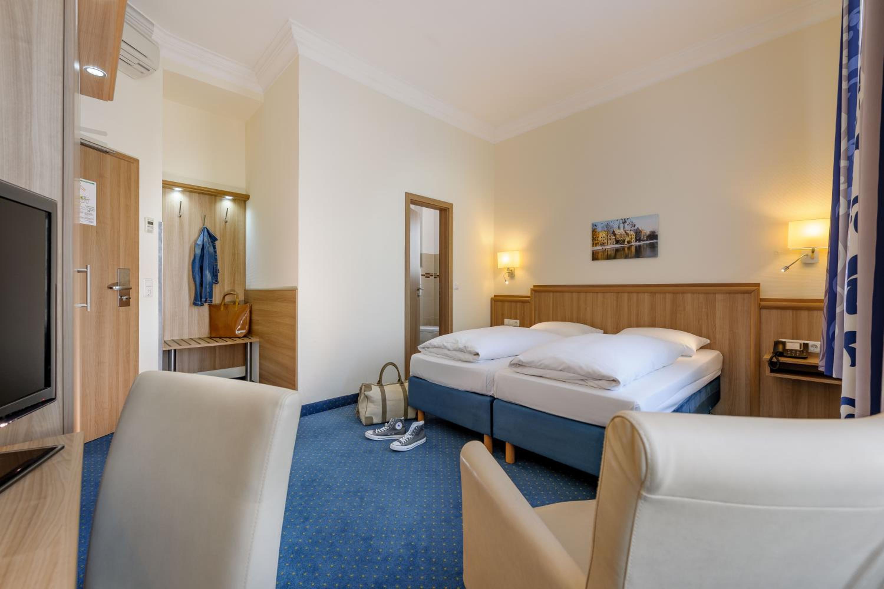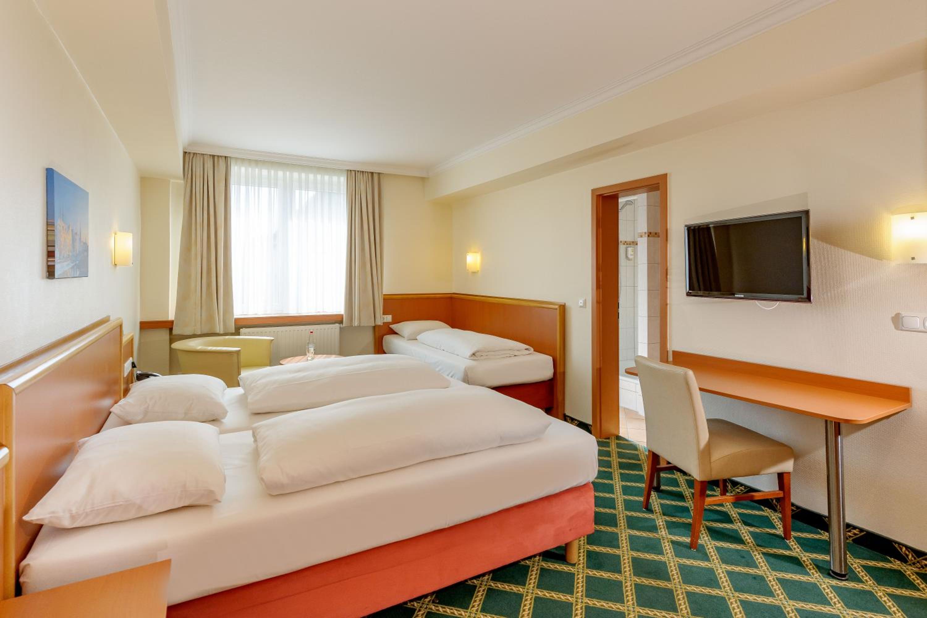 Das Personal war sehr nett. Das Zimmer war sauber und die Lage des Hotels einfach perfekt. Vom naheliegenden Bahnhof hat man nichts gehört.