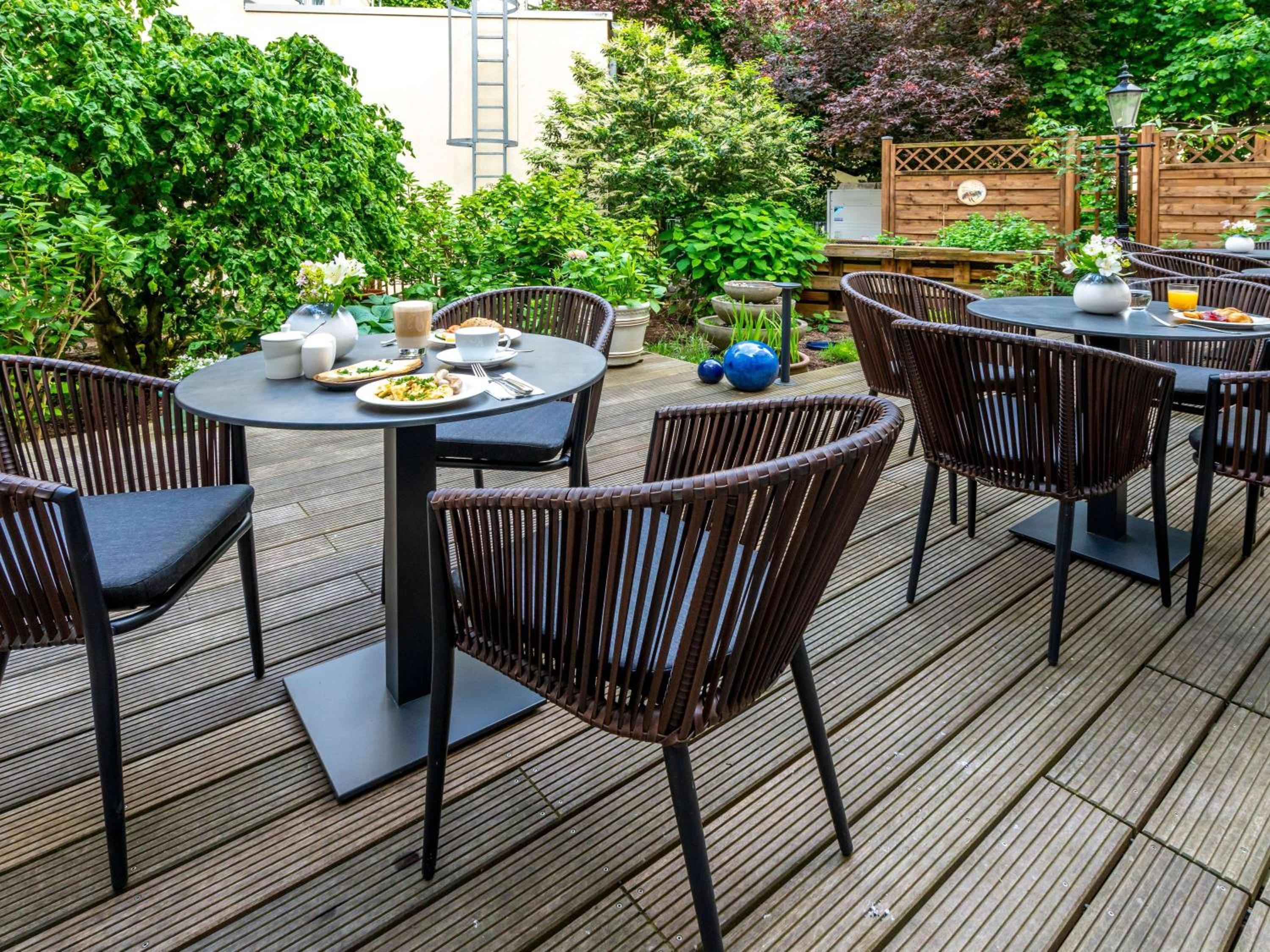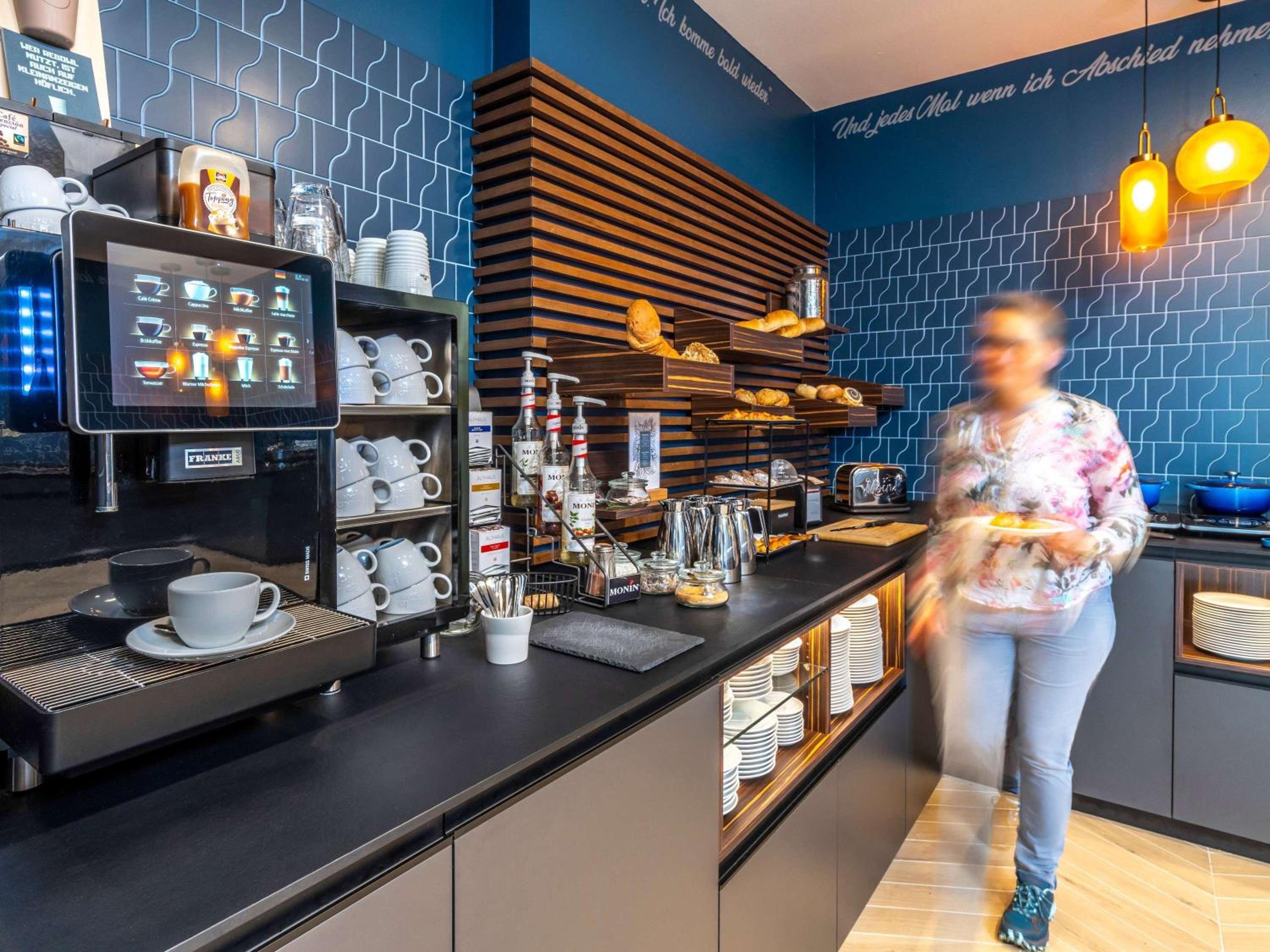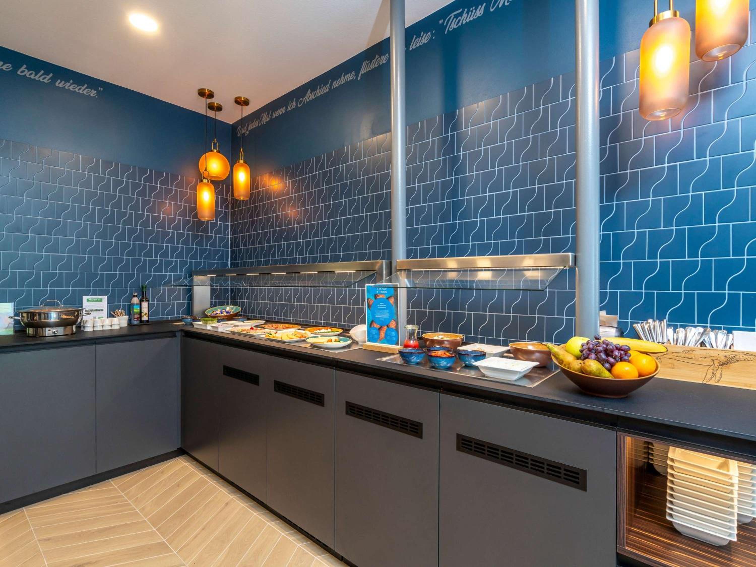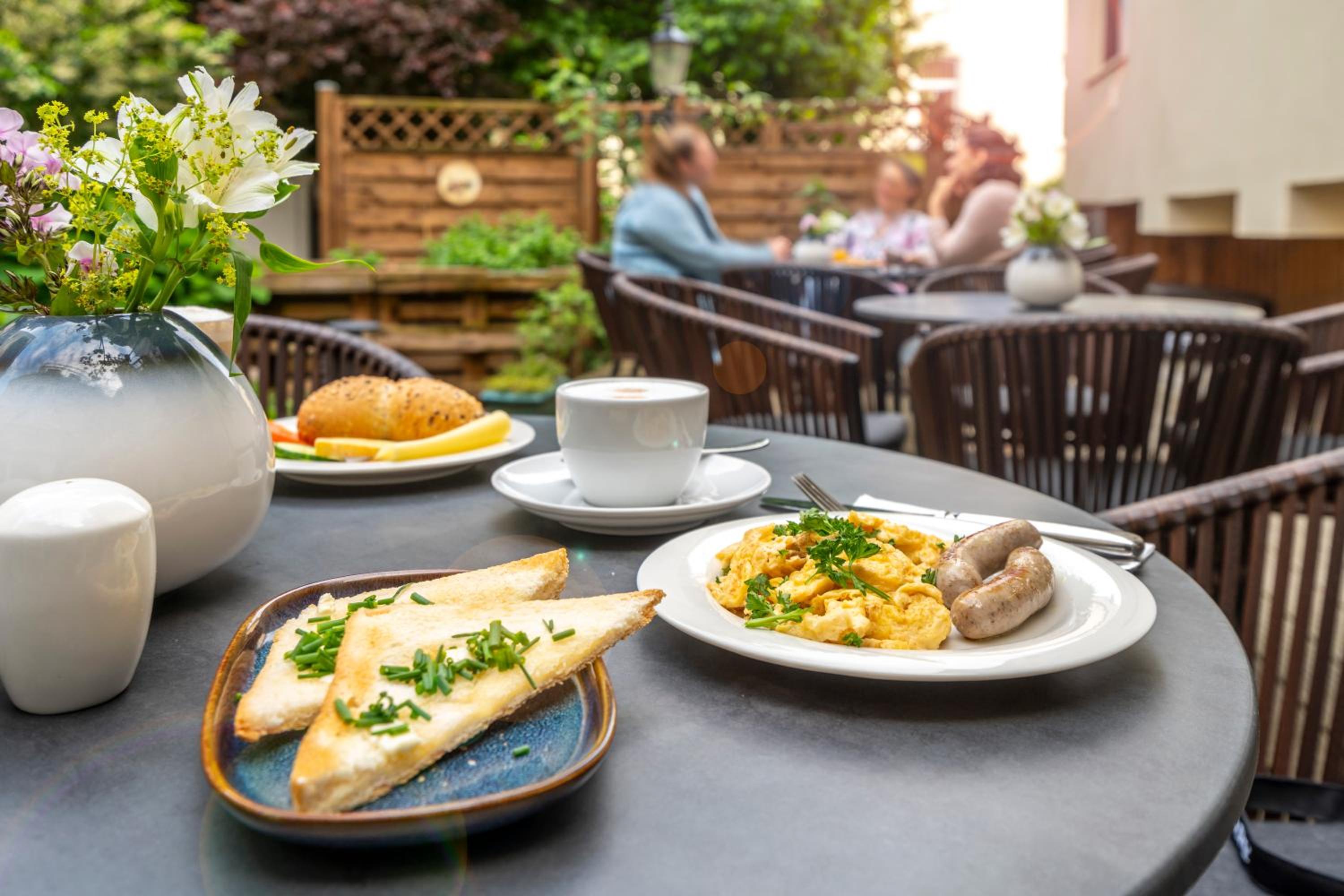 Start your day with a full buffet breakfast in the cheerful dining room. Explore various dining options in the vibrant surrounding area near the Holstentor Gate.