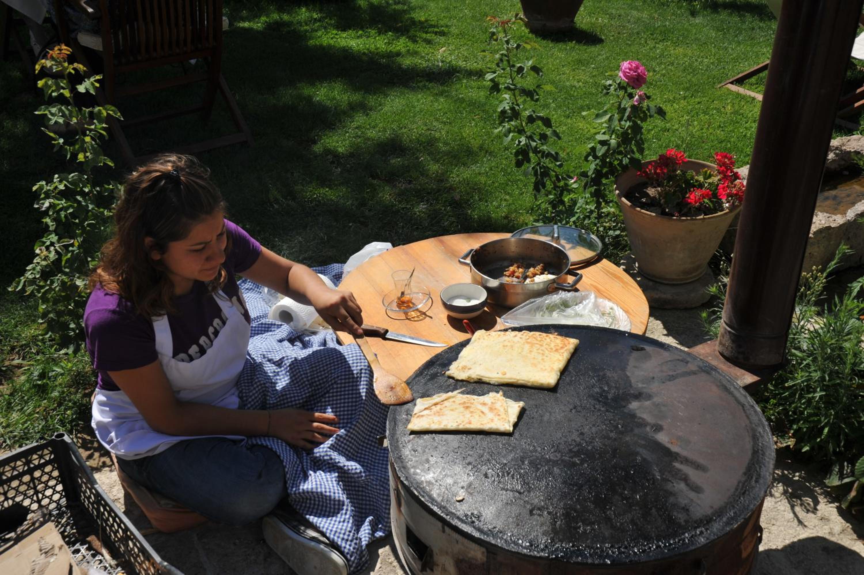 Ürgüp'ün merkezine yürüyerek 8-10 dk da ulaşılabilecek konumda geniş bahçesi ile ferah bir konaklama sunan otelde kalıyor olmaktan çok adında da geçtiği gibi evde kalıyormuşsunuz hissi veren bir tesis. Hem açık büfe de sunulan yiyecek çeşitliliği hem de yumurta, gözleme gibi sıcak hazırlanan yiyeceklerle yapılan kahvaltı oldukça iyi.