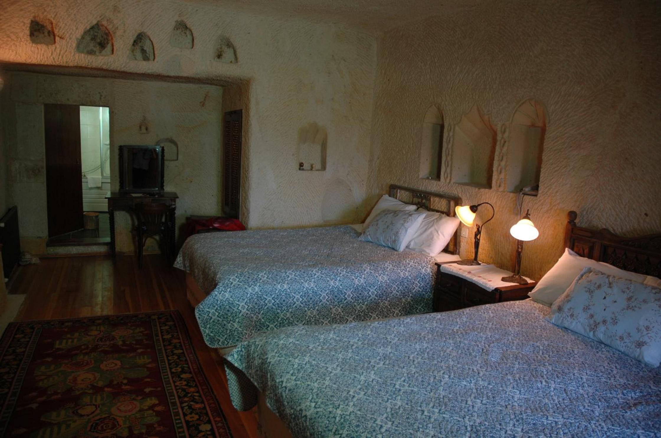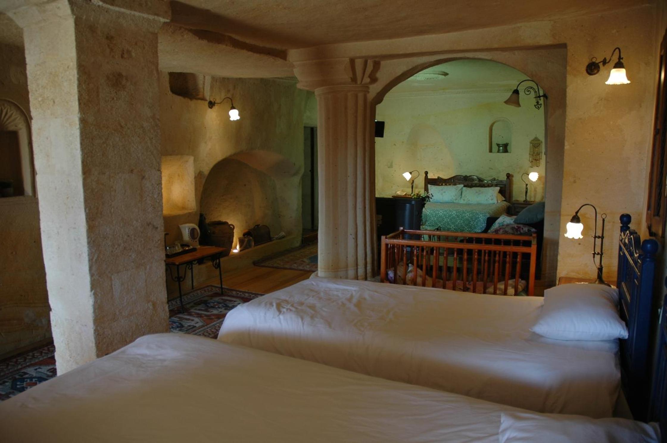 True hospitality! Nicely arranged cave room with a very comfortable double bed plus separate twin beds in their own little caves.