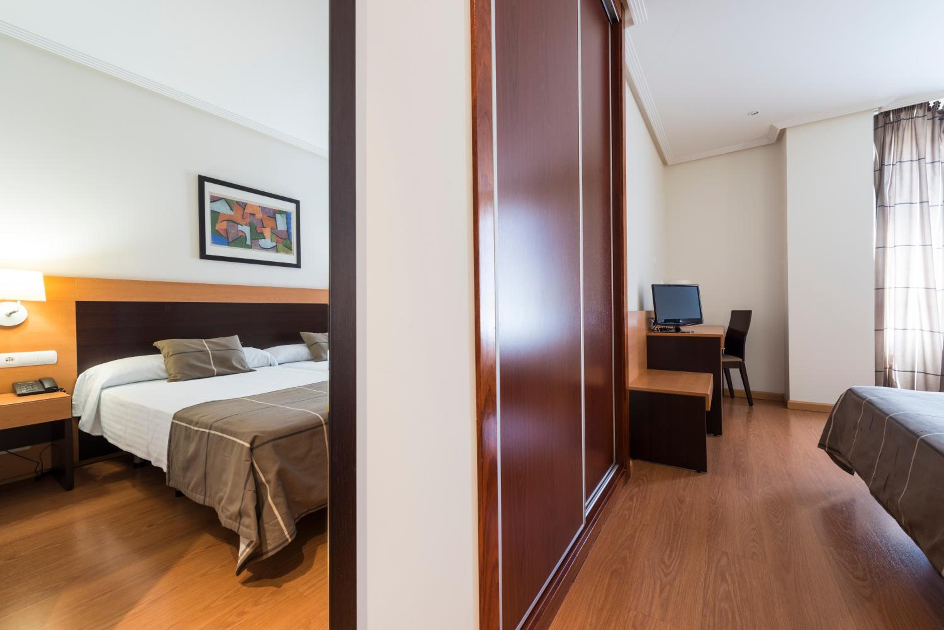 Experience comfort and luxury at FC Infantas de León with stylish modern rooms featuring flat-screen satellite TV, under-floor heating, and contemporary design.