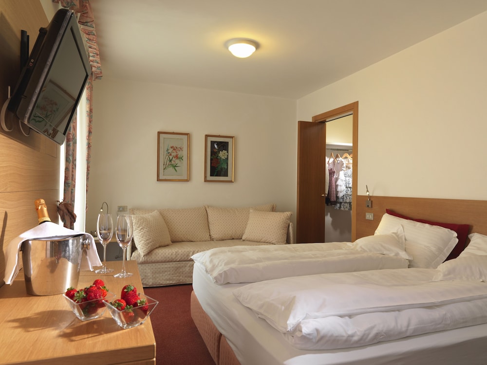 Albergo molto bello situato un po' in collina si vede uno stupendo lago camera non grandissima ma molto accogliente si sente il profumo de legno appena entri peccato abbiamo soggiornato solo per una notte la cena molto curata colazione più che sufficiente staff gentile ci ritornerò