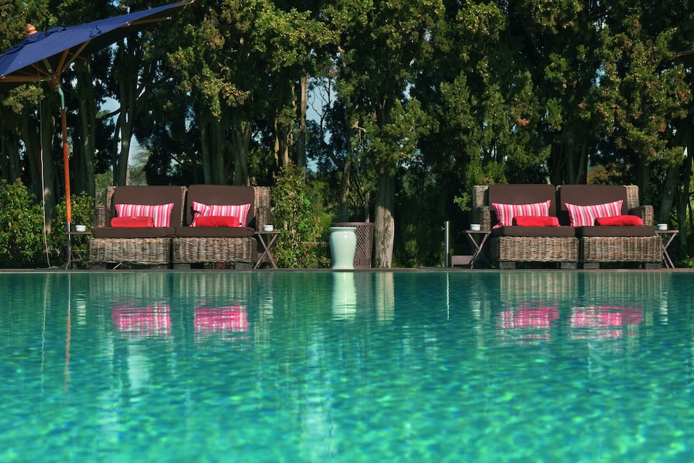 This is a beautiful, character-filled hotel that is easily accessible but quiet and secluded. We were in a suite with a massive (California King) bed, huge marble bath, and lovely large bathroom with walk-in shower. We had a second-floor room with its own large outdoor sitting area with a view of the grounds. The restaurant was amazing: we ate breakfast and dinner each of the three days we stayed. Breakfast was included and dinner was an excellent value. The wine list was great and quite inexpensive for the quality. Service from all staff was wonderful. Our only regret is that we didn't have enough time to enjoy the large, beautiful lounge areas and we stayed too early in the season to use the pool.