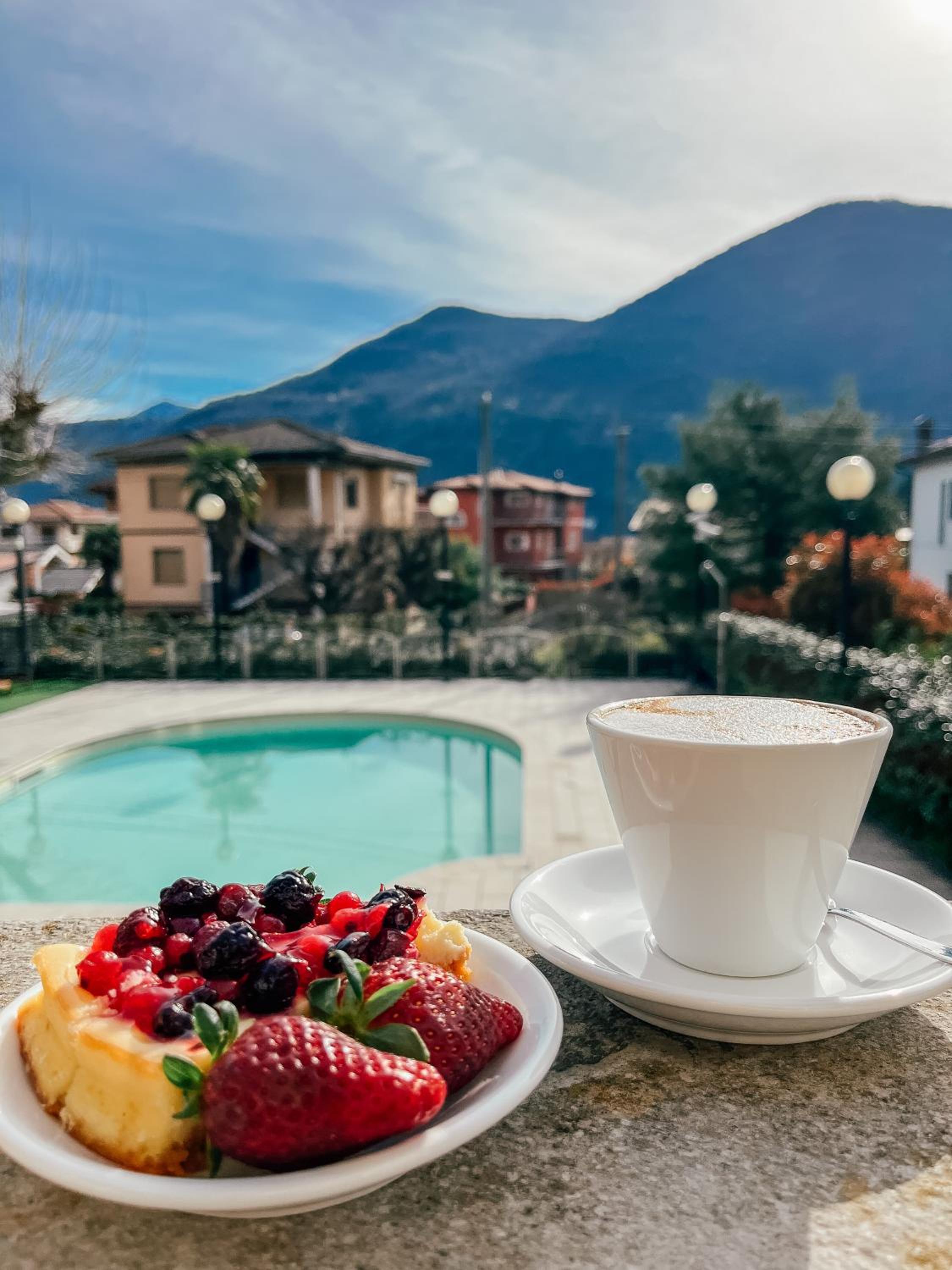 L'hotel non è recente ma la camera era ben tenuta e con una bellissima vista sulla piscina e oltre si vede il lago.