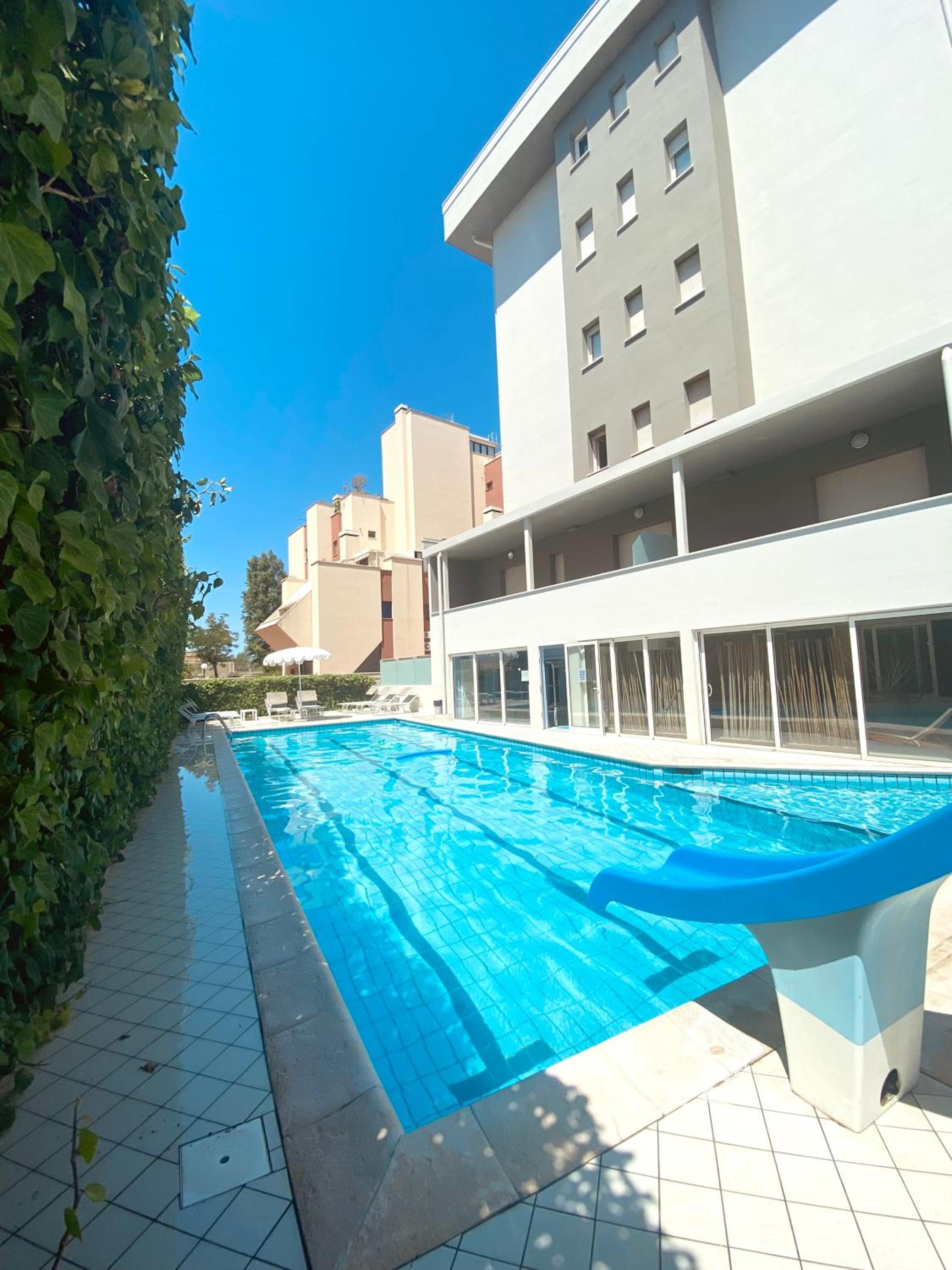 Modern Amenities: Indulge in luxury with a chic cocktail bar and a refreshing swimming pool, making the 3-star Noha Suite Hotel the ultimate destination for a quality stay in Riccione. Book now for a perfect blend of leisure and comfort at our eco-friendly renovated property.