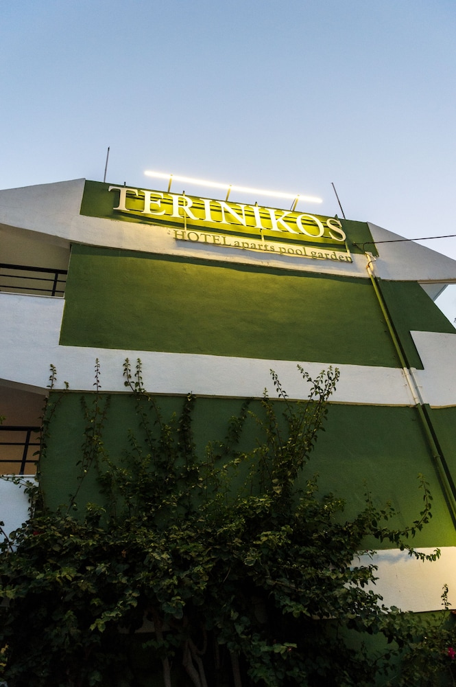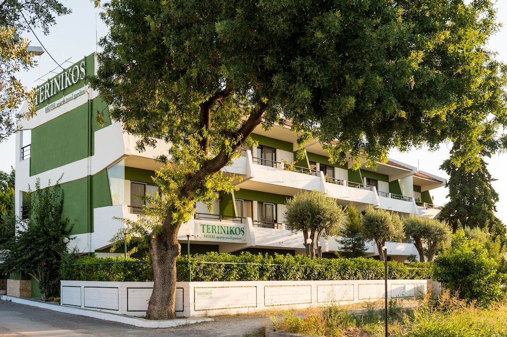 I stayed at Terinikos hotel with my mom, wife and small 6 months old daughter. Overall we had very good time at the hotel. Mom loved the garden with full of trees and flowers. We had very good support from hotel manager Nikos, who provided us with whatever was missing or not working very well (additional wifi repeater to our room, big knife, cooking pot and microwave for kitchenette). Since I stayed at Terinikos with my car and traveled every time to Kremasti for Kitesurfing spot, I can't judge surroundings of the hotel. Ialysos is not typical beach like place, where you just stay on the beach and in pubs, you have to make your own program and visit other places. Simply Terinikos is surrounded by other little hotels and houses. Although it is just 10 minutes walk from near by beach.