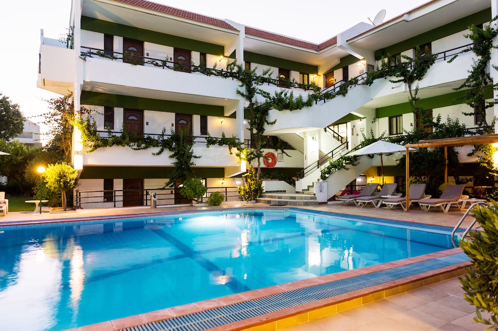 Fikk i utgangspunktet utdelt et rom delvis nedenfor bakenivå som luktet veldig kjeller. Spurte om å få bytte, men alle rom var opptatt, så fikk beskjed om å spørre igjen dagen etter da det var mange som skulle dra. Da vi spurte igjen dagen etter fikk vi med en gang bytte til et rom i tredje etasje med fin balkong! :) Rommene er noe utdaterte og vi fikk ingen rengjøring på de fire dagene vi bodde der. Bassenget hadde også veldig uklart vann, men virket ellers rent. På pluss siden var det god service, gratis nett, rolig bassengområde, og vi måtte aldri betale for air condition. Vi fikk også beholde rommet lenger på avreisedagen til bare 10 euro ekstra. Hotellet ligger litt for seg selv, så det er veldig rolig der, men det tar bare 2-3 minutter å gå ned til stranden eller til det lokale sentrum. Alt i alt veldig fornøyd med hva vi fikk for prisen!