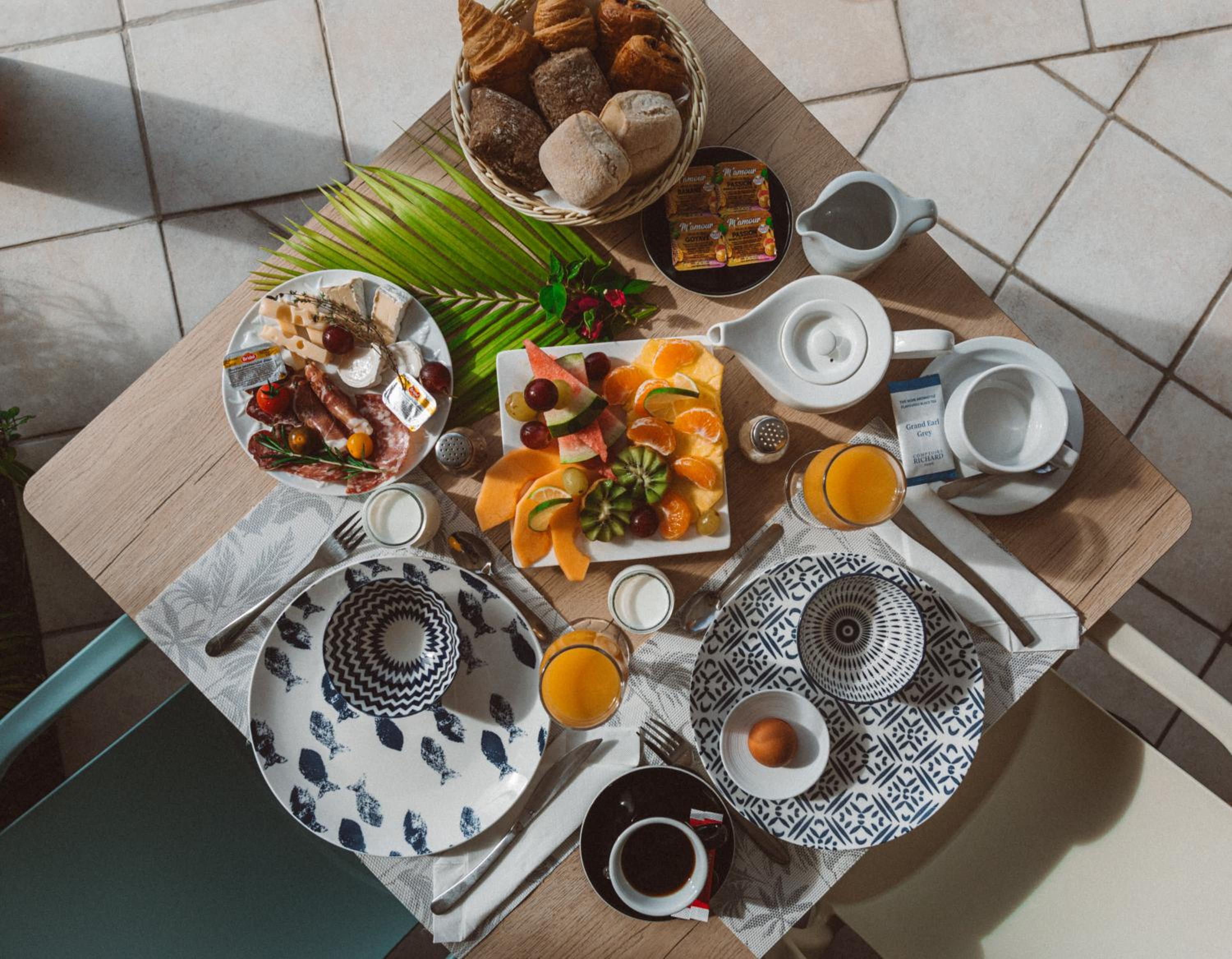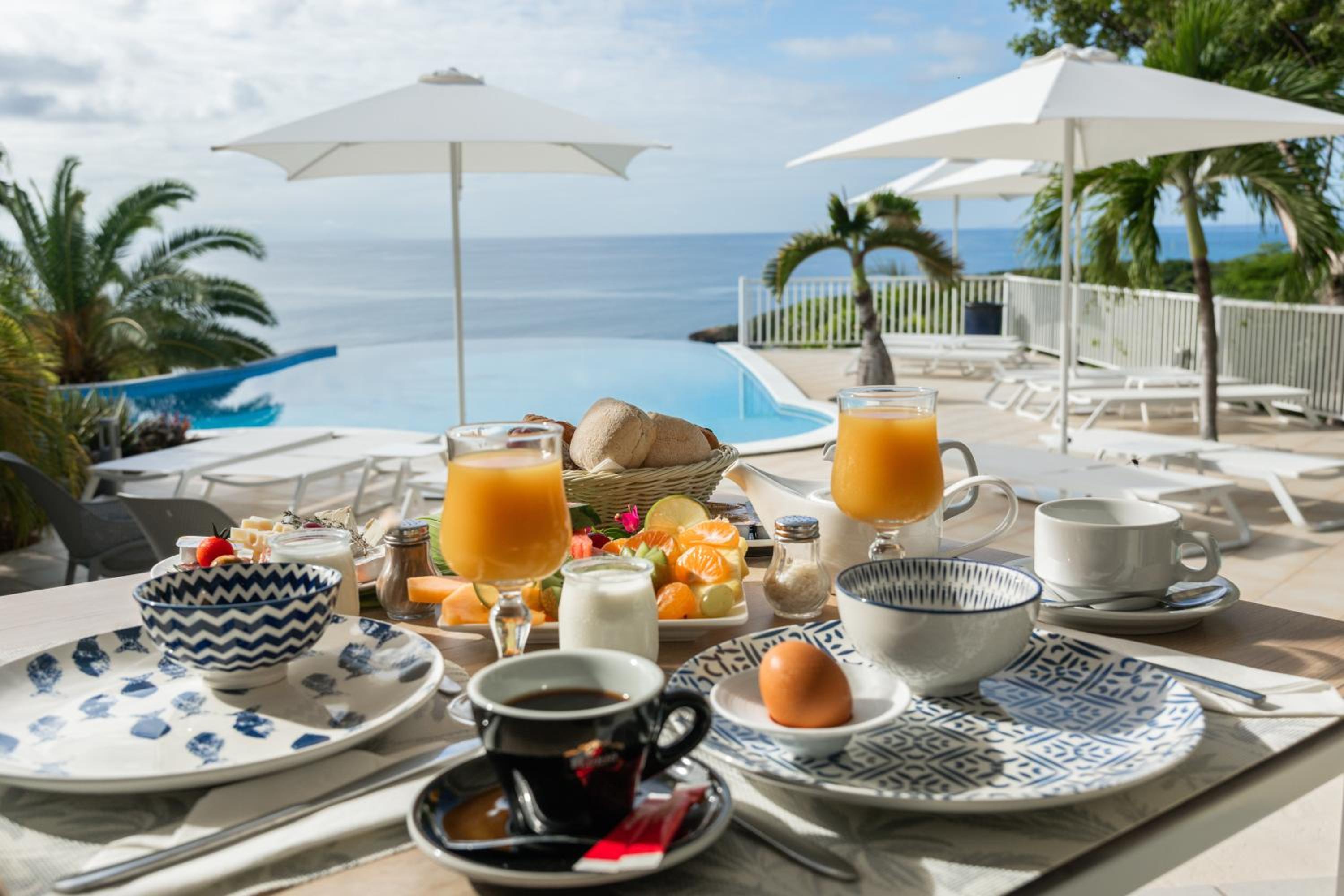 Breakfast was served in a fabulous terrace room partially open to the great surroundings. Breakfast had an assortment of choices and very delectable. Staff were great and thoughtful. Couldn't ask for better.