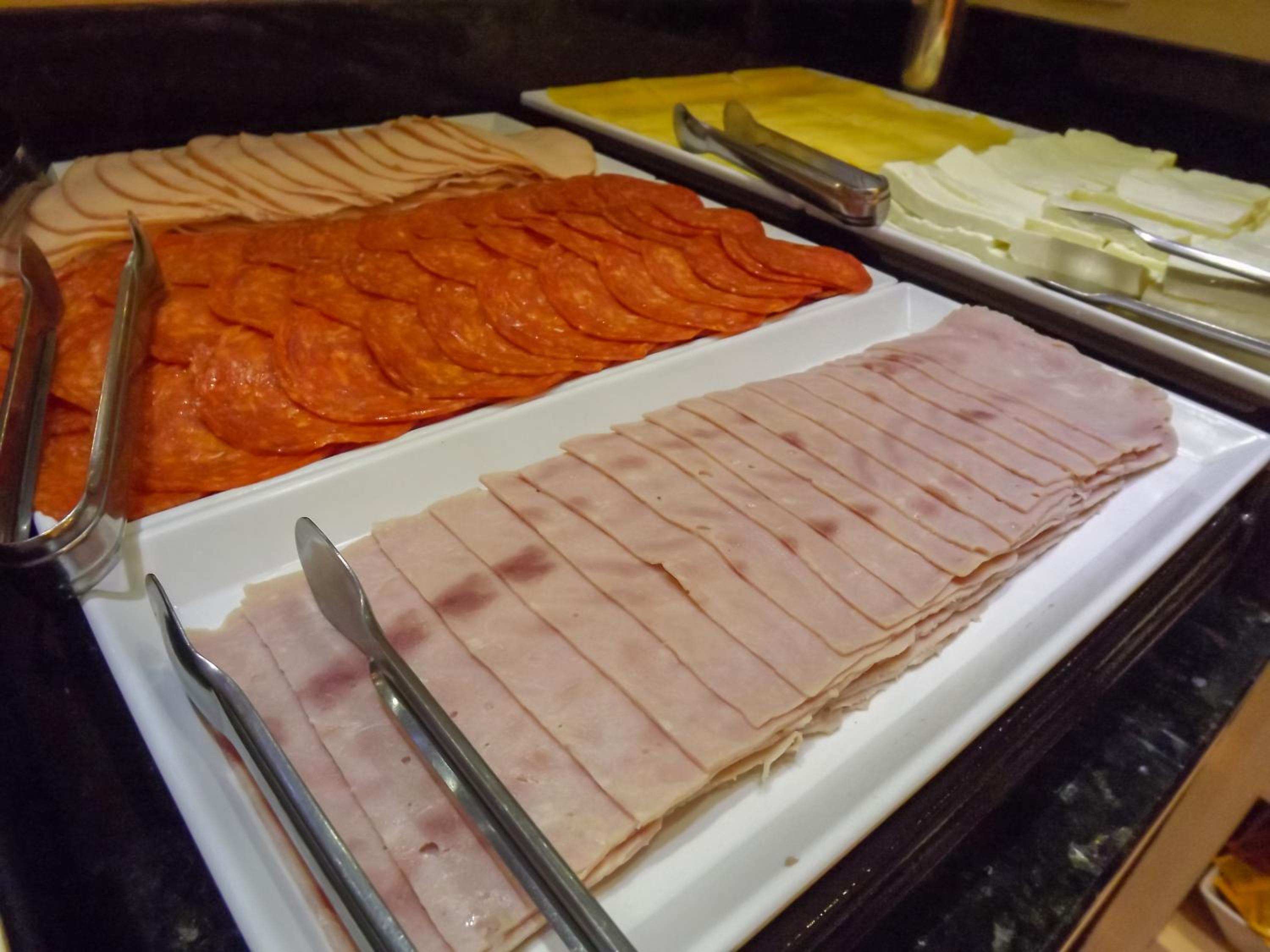 Café da manhã fabuloso, frutas frescas, variedade bolos, sucos, queijos temperatura adequada , café, ovos mexidos , salsicha ao molho, produtos de qualidade...