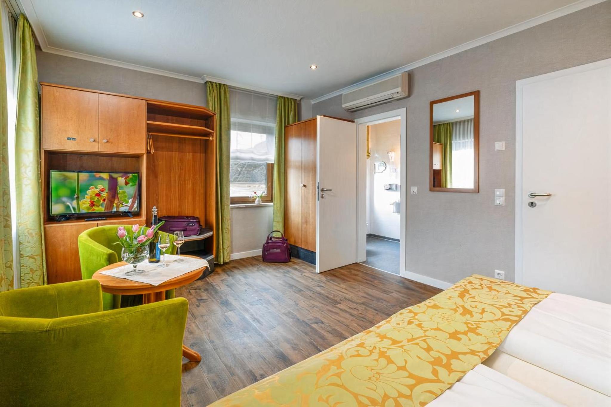 Wij hadden een ruime kamer met uitzicht op de Rijn wat prachtig was, het personeel was super vriendelijk ook het ontbijt was heerlijk en kregen de keus wat voor eitje wij er bij wilde hebben, wij hebben er ook gedineerd wat ook heerlijk was. Alles was super schoon dus een top verblijf gehad