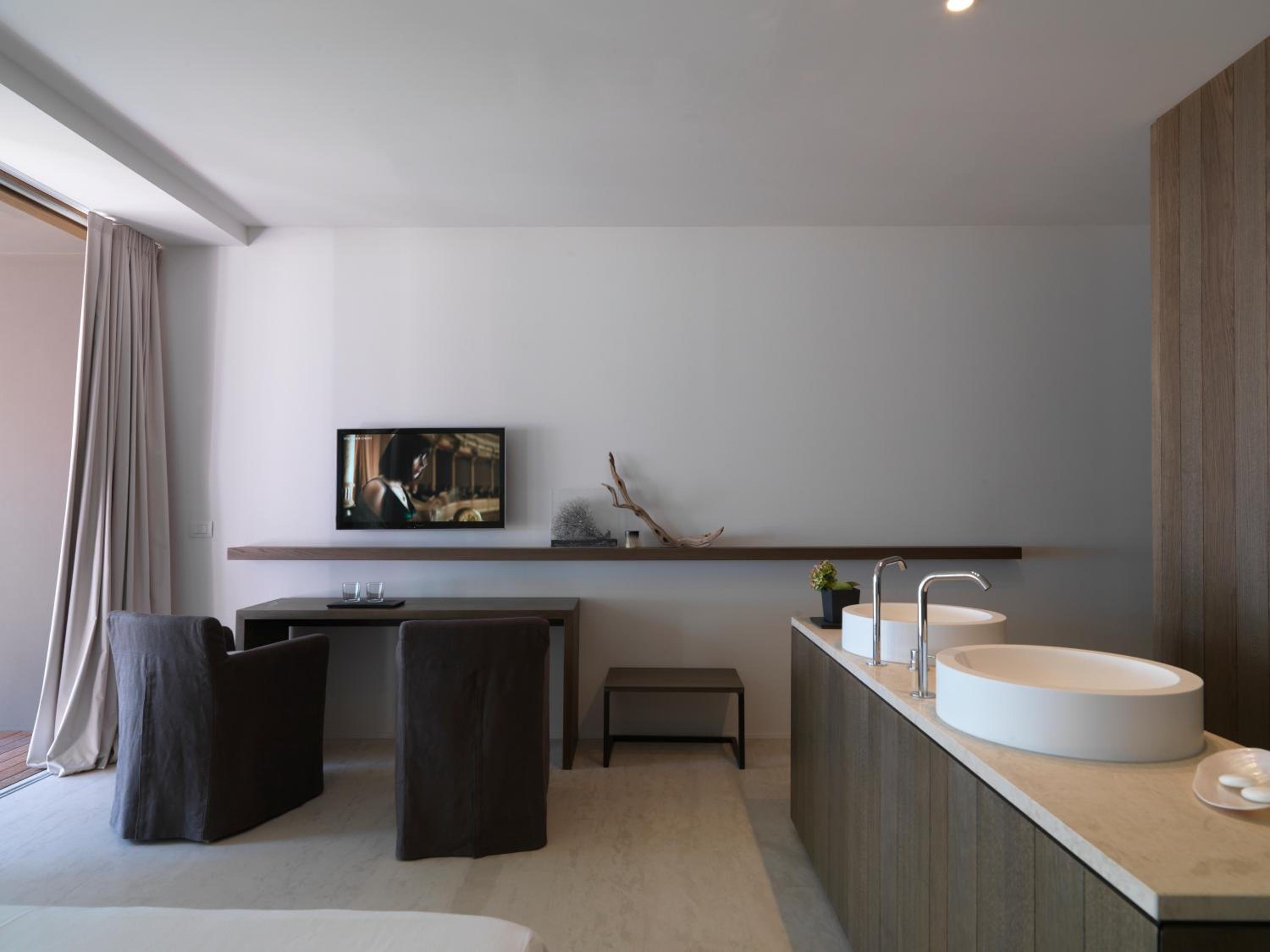 Slightly strange pricing breakdown — many things cost extra (like sitting outside on the terrace at the restaurant in the evening, or using beach umbrellas on the actual beach by the sea). No coffee machine in the room, no complimentary water (which one would really expect in this price category).