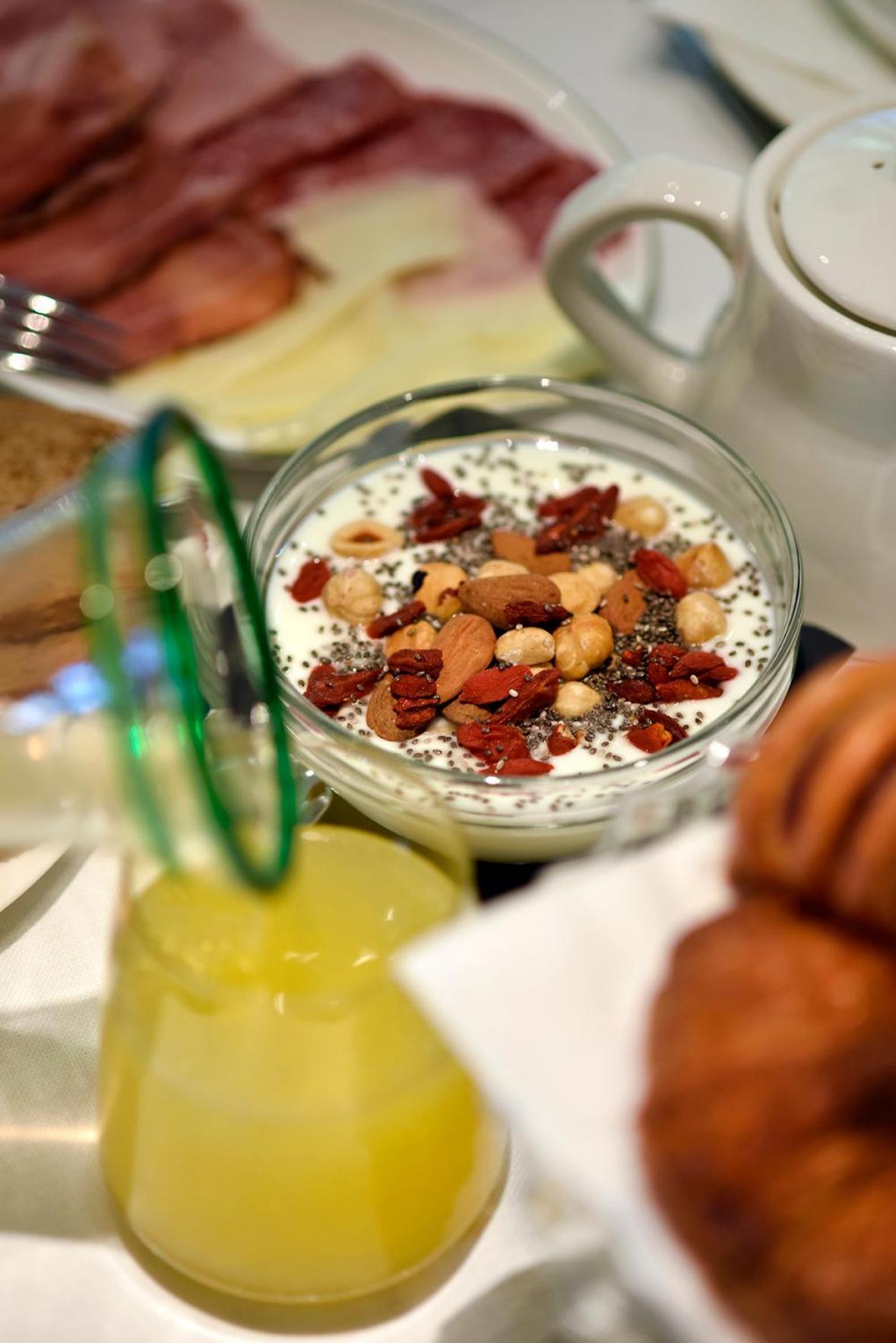 Everything was amazing! The location with pine trees, the room, the facilities: everything! We visited the top terrace and the view was beautiful from there. One day it was cloudy and we saw the spa. Breakfast is outstanding: great coffee, salmon, lots of fresh pastries, pancakes... The staff was always very helpful and nice. The room was very clean and beautiful.
