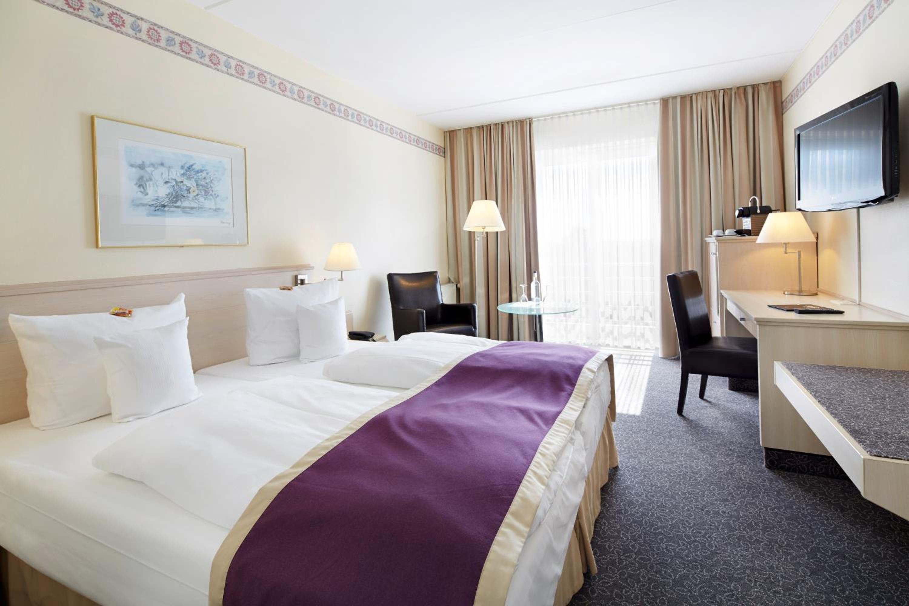 Modern Amenities: Each room at the Best Western Hotel Helmstedt am Lappwald is equipped with adjustable air conditioning, complimentary WiFi, a flat-screen satellite TV, spacious desk, and a cozy seating area. The bathrooms are stocked with a rejuvenating shower, hairdryer, cosmetic mirror, and free toiletries for your convenience.