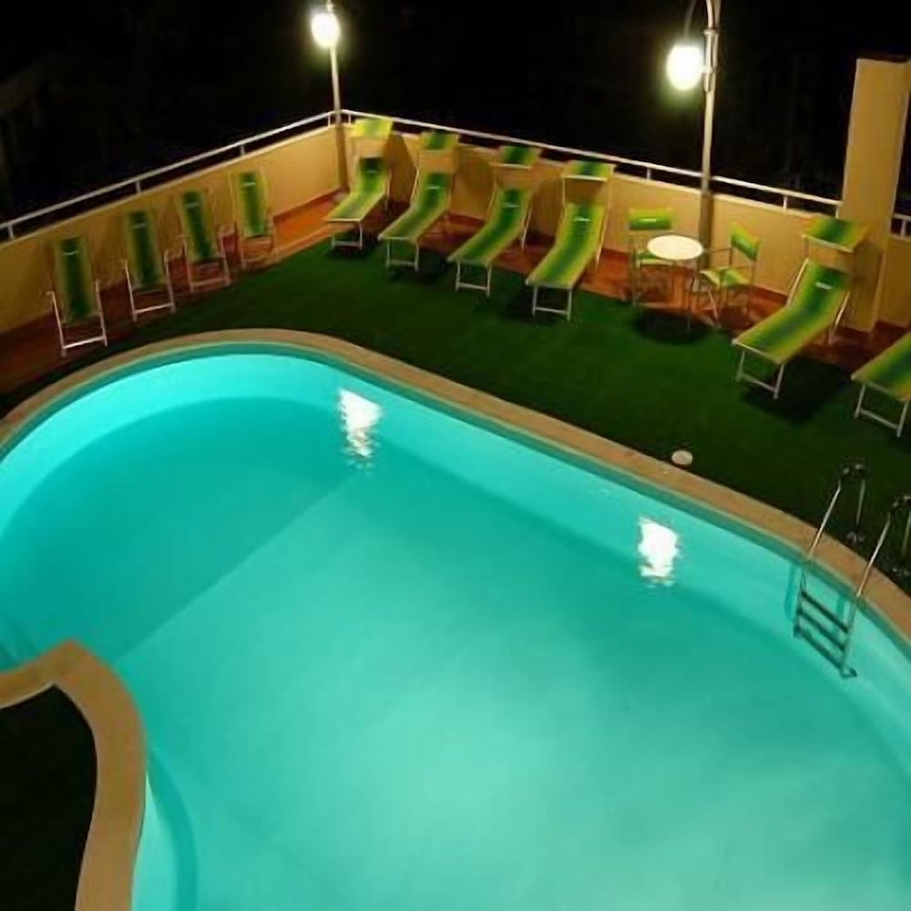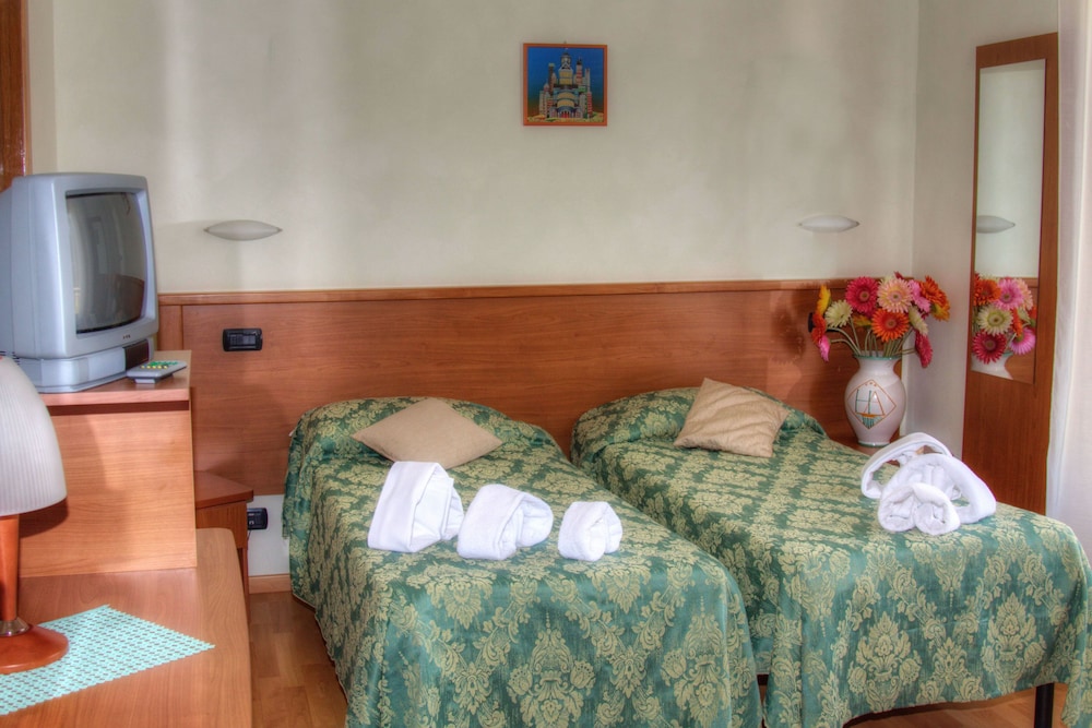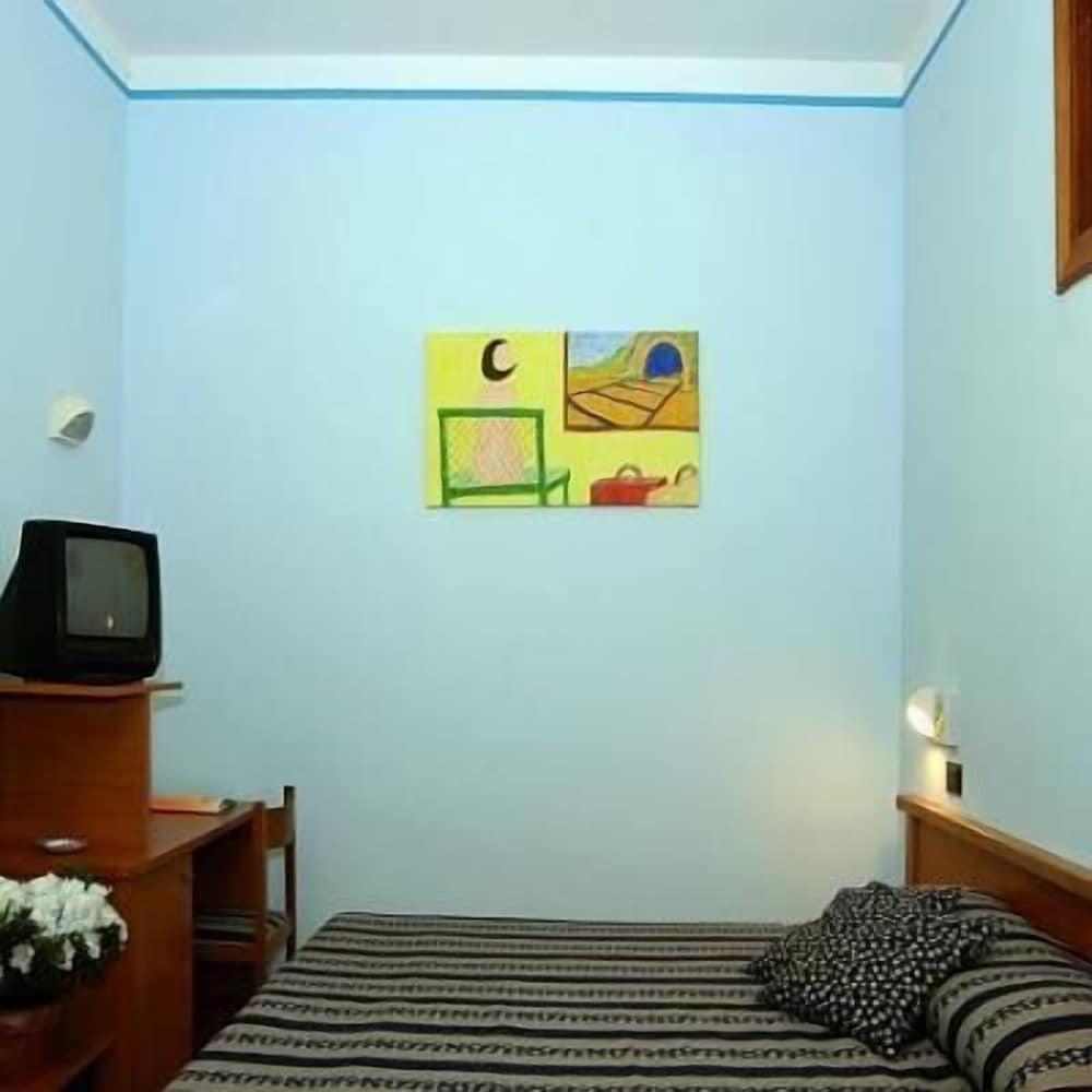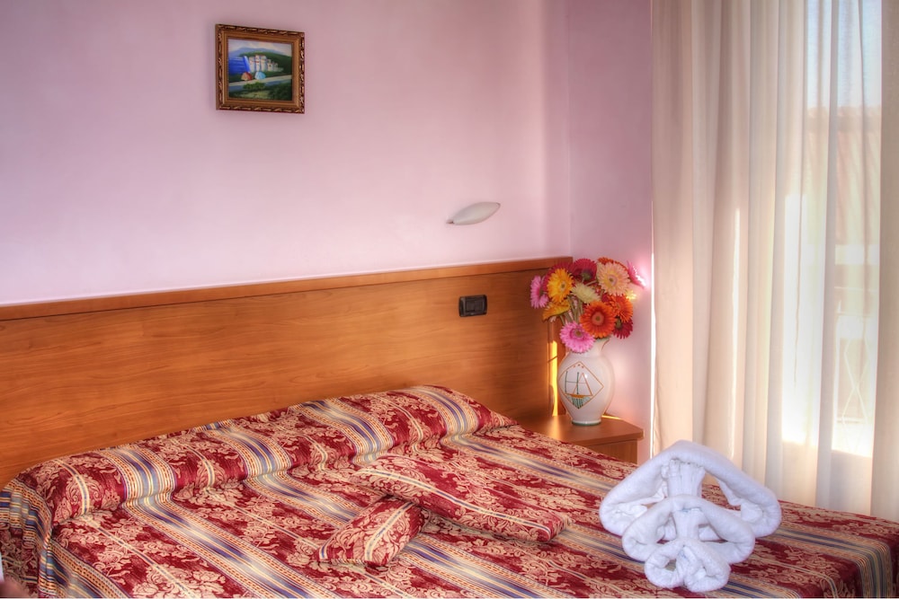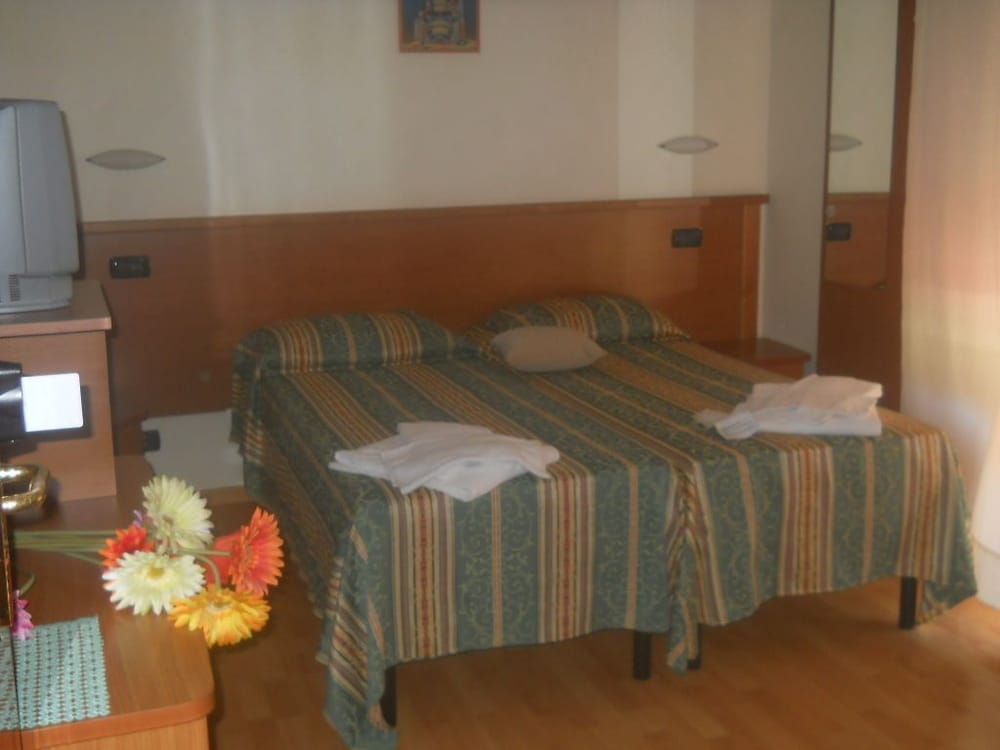 Ein fürchterliches Hotel. Für uns war es ein Horror. Wir hatten ein Familienzimmer gebucht. Das Zimmer war für 2 Erwachsene und 2 Jugendliche so klein das wir über unser eigenes Gepäck steigen mussten. Unsere Kinder mussten bei uns im Bett übernachten da die Stockbetten notdürftig repariert waren und die Gefahr bestand, dass diese zusammen krachen. Der Übernachtungspreis für diesen Standard ist wucher! Die Bäder waren aus den 70er Jahren und z.B. funktionierte die Toilettenspülung nicht. Der Duschvorhang war absolut provisorisch angebracht. Zudem waren die Zimmer nicht sauber. Unsere Tochter hatte am nächsten morgen einen Bettwanzenstich. Die Rezeptionistin sprach kein Englisch oder Deutsch (nur italienisch). Der Lift ist absolut klein und wir hatten Angst in ihm stecken zu bleiben (sackte bei jeder Person die einstieg etwas ab). Ich könnte jetzt noch mehr schreiben aber ich denke das gibt einen groben Überblick. Einzist der Pool am Dach war O.K. Die Zimmerdarstellung bei Expedia weswegen wir das Hotel gebucht haben stimmen nicht (Hoteldetails).