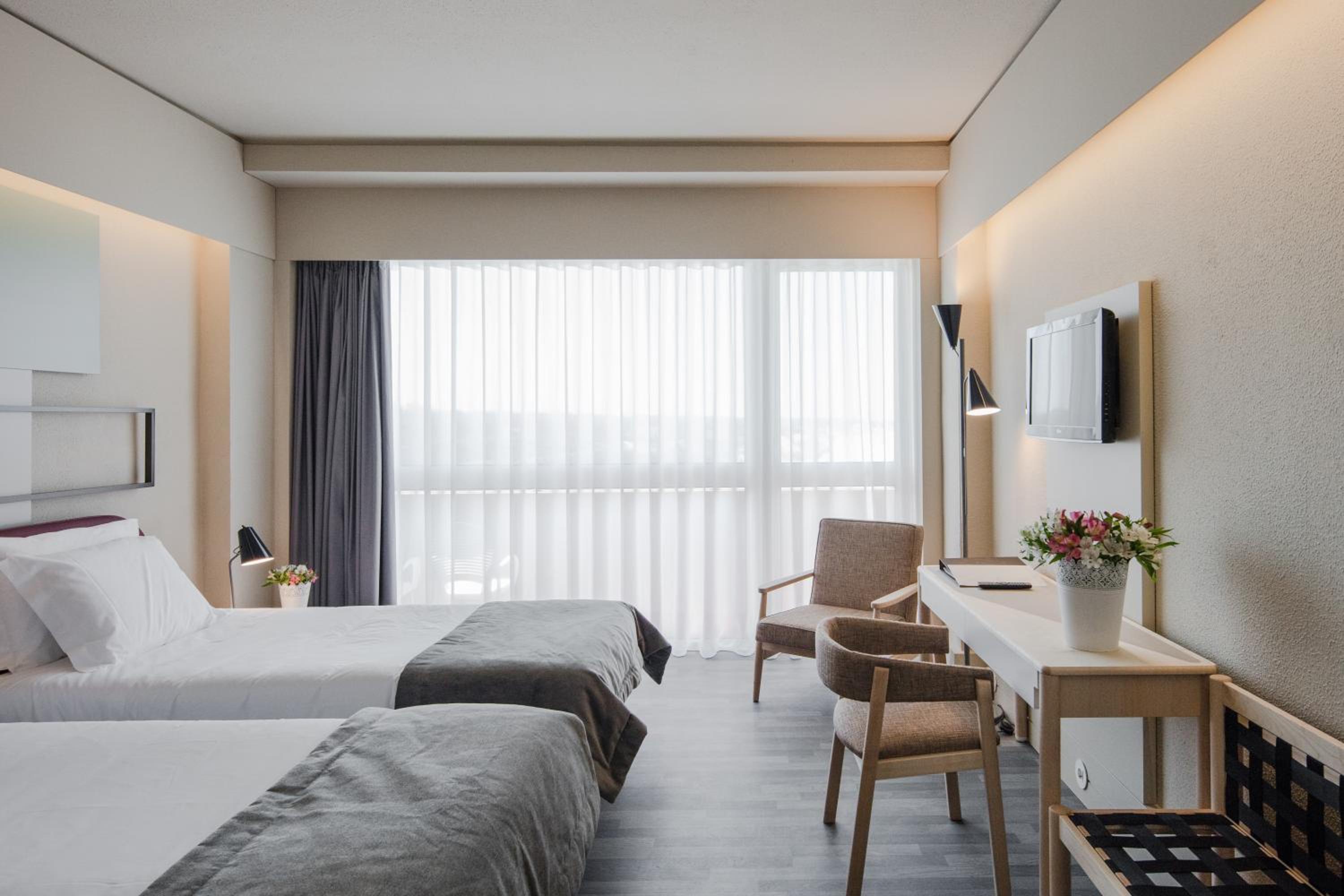 The modern rooms at Axis Ofir Beach Resort Hotel provide a comfortable retreat, each opening out onto private balconies. With amenities such as air conditioning, satellite TV, and minibars, guests can relax in style after a day of activities.