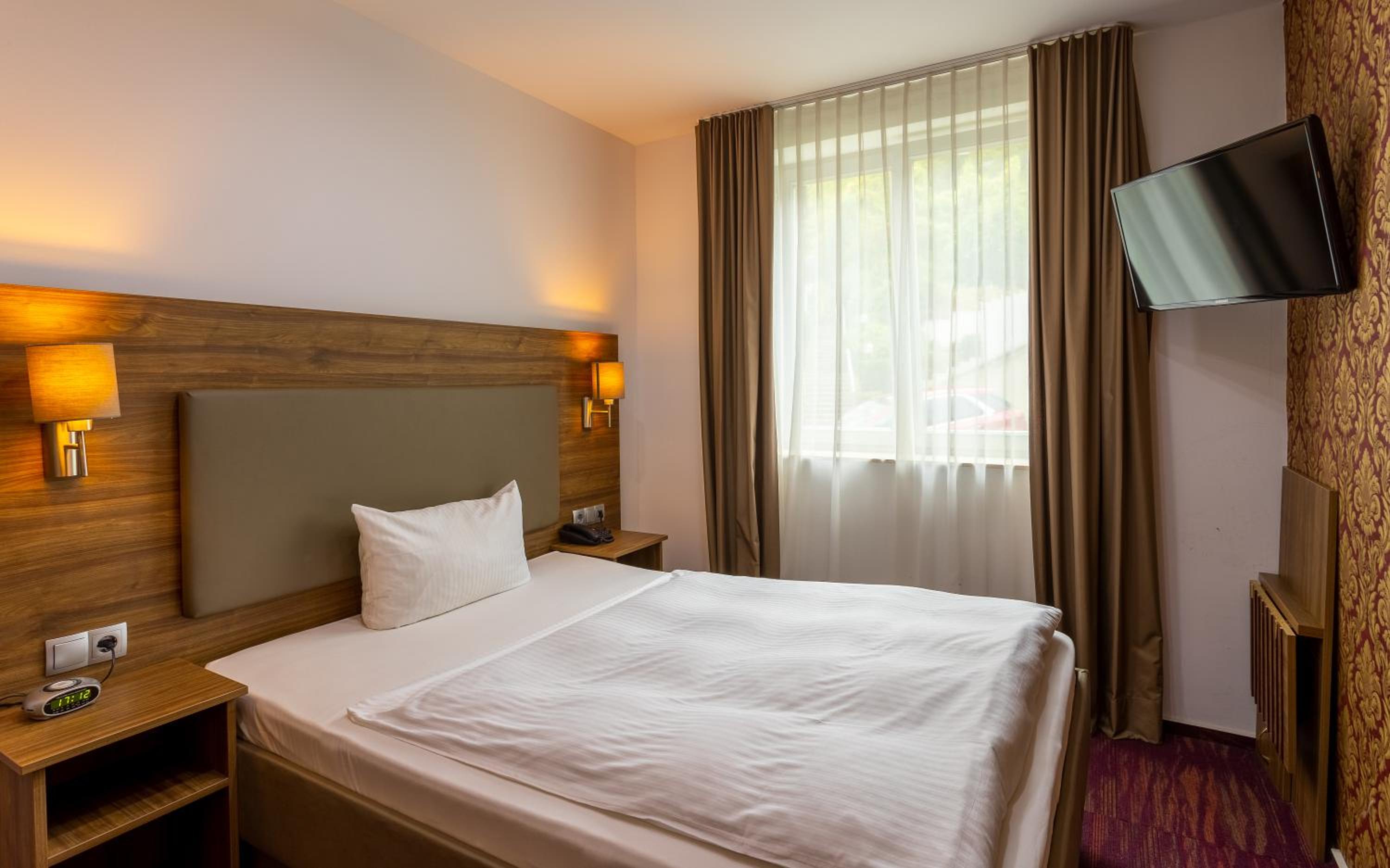 Hotel mit modern eingerichteten sauberen Zimmern, Bad mit ebenerdiger geräumiger Dusche , preiswerter Parkplatz überdacht, schöner , heller Frühstücksraum neu möbeliert