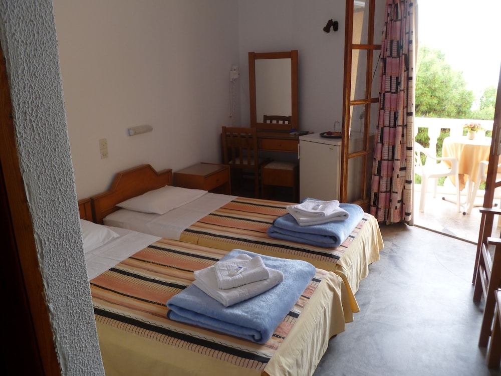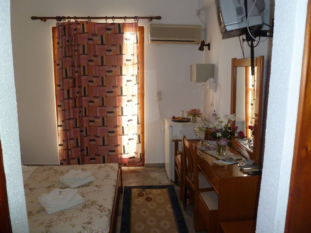 Estuvimos encantados en el hotel, habitacion con terraza y vistas al mar y la playa. La playa a dos minutos a pie. Y hay innumerables calitas alrededor para bucear o estar flotando en el agua. La situacion inmejorable, pues esta en el pueblo pero no encima de los bares y pufs. Es un hotel familiar, como estar en casa,pero a tu aire. La habitacion es muy basica pero tiene todo lo necesario, y la gente muy muy amable. Si no te entiendes en griego, hablan ingles. Hay ferry directo desde El Pireo. Sin duda volveremos a Grecia, y seguramente repetiremos e este hotelito.