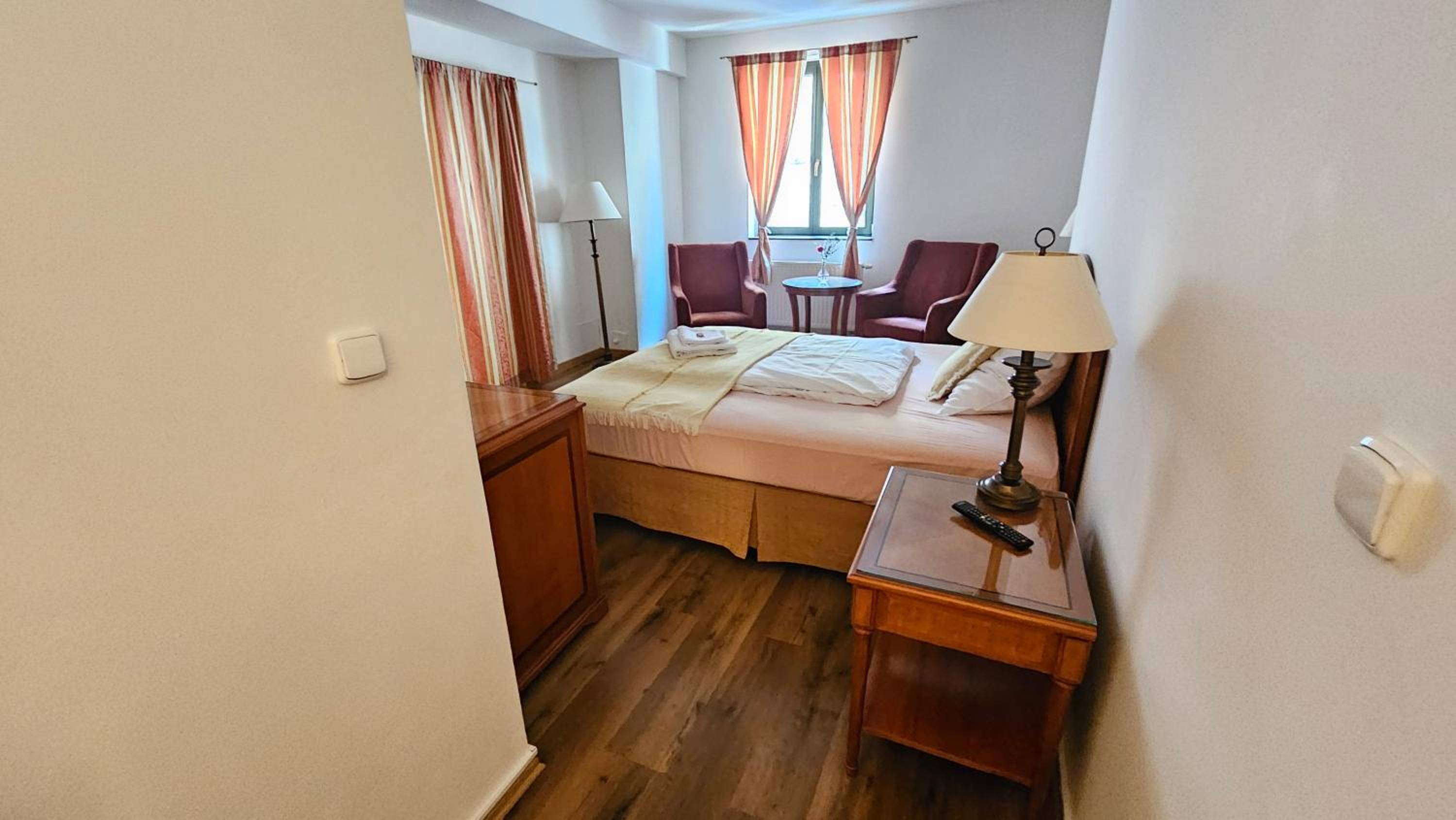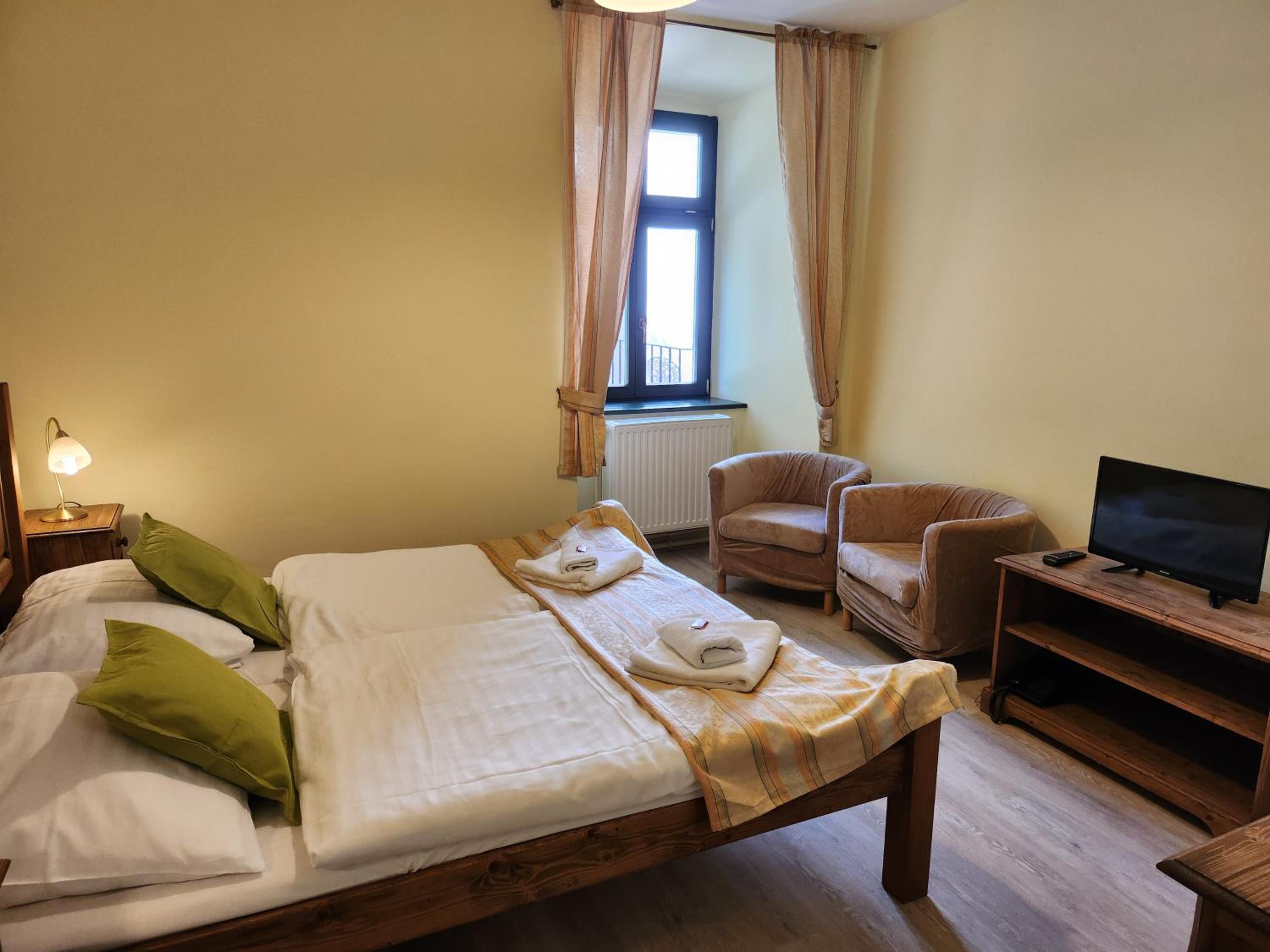 Pěkné ubytování v krásné budově. Lokalita přímo v centru. Parkování přímo u hotelu.