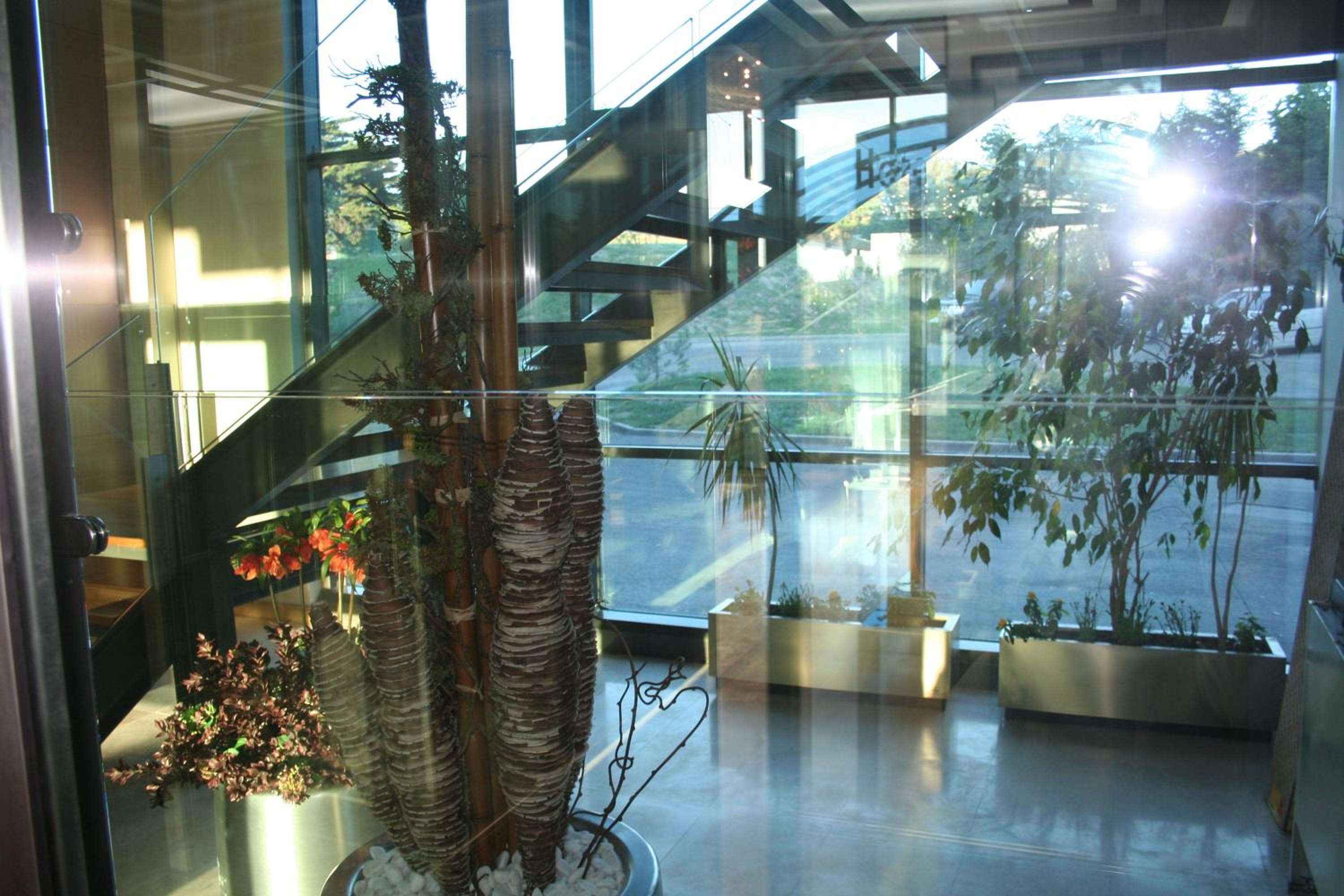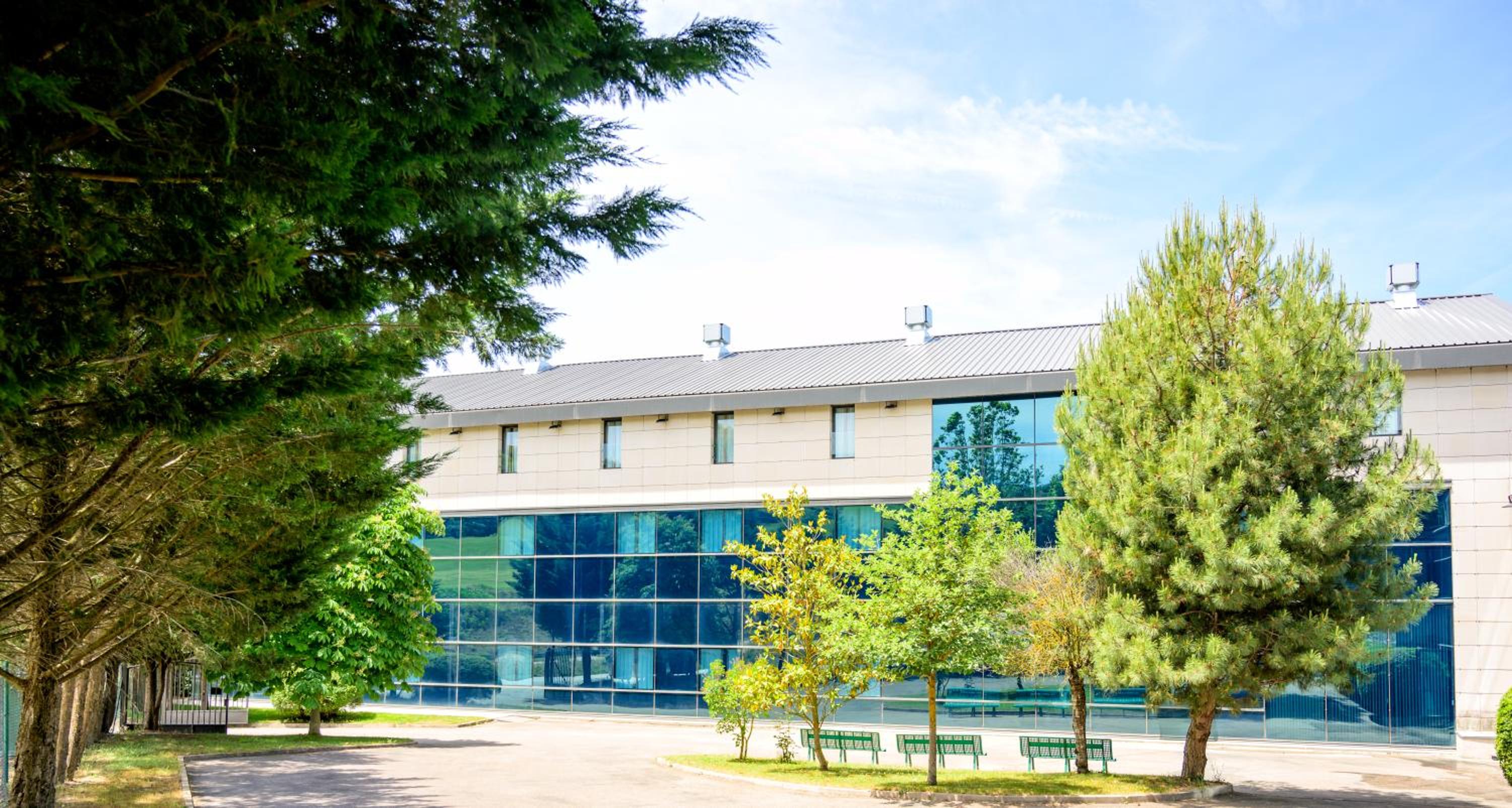 Experience the tranquil beauty of Briviesca at our modern glass building hotel, offering stunning views of the lush countryside.